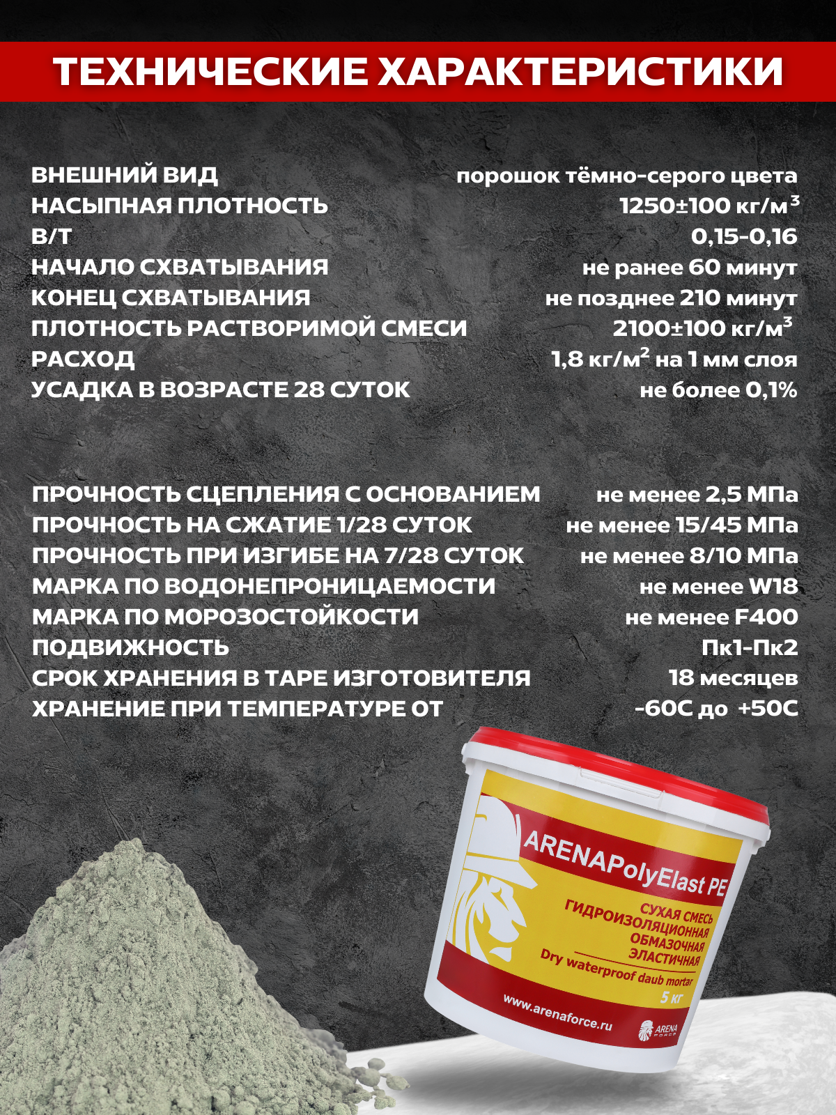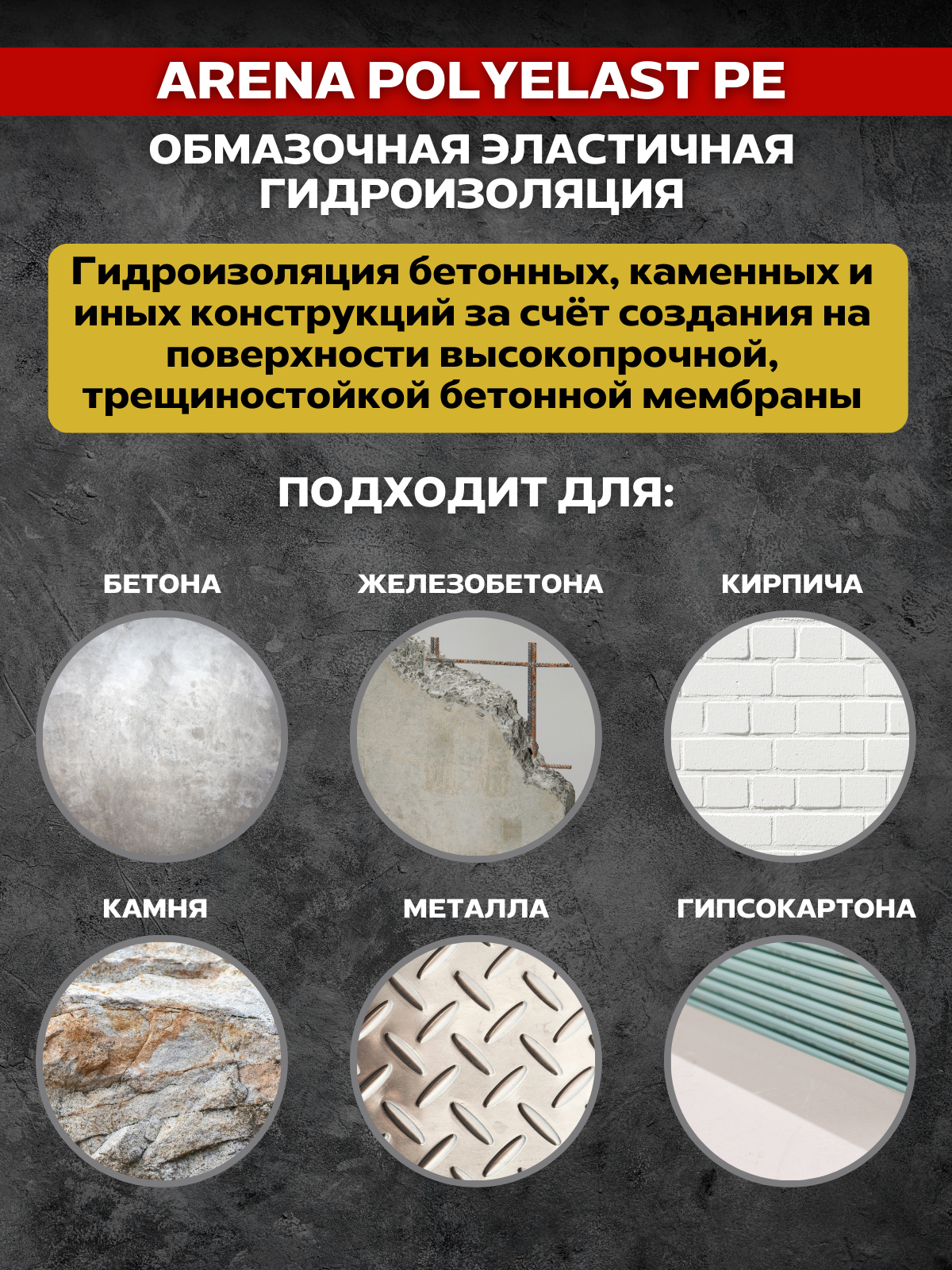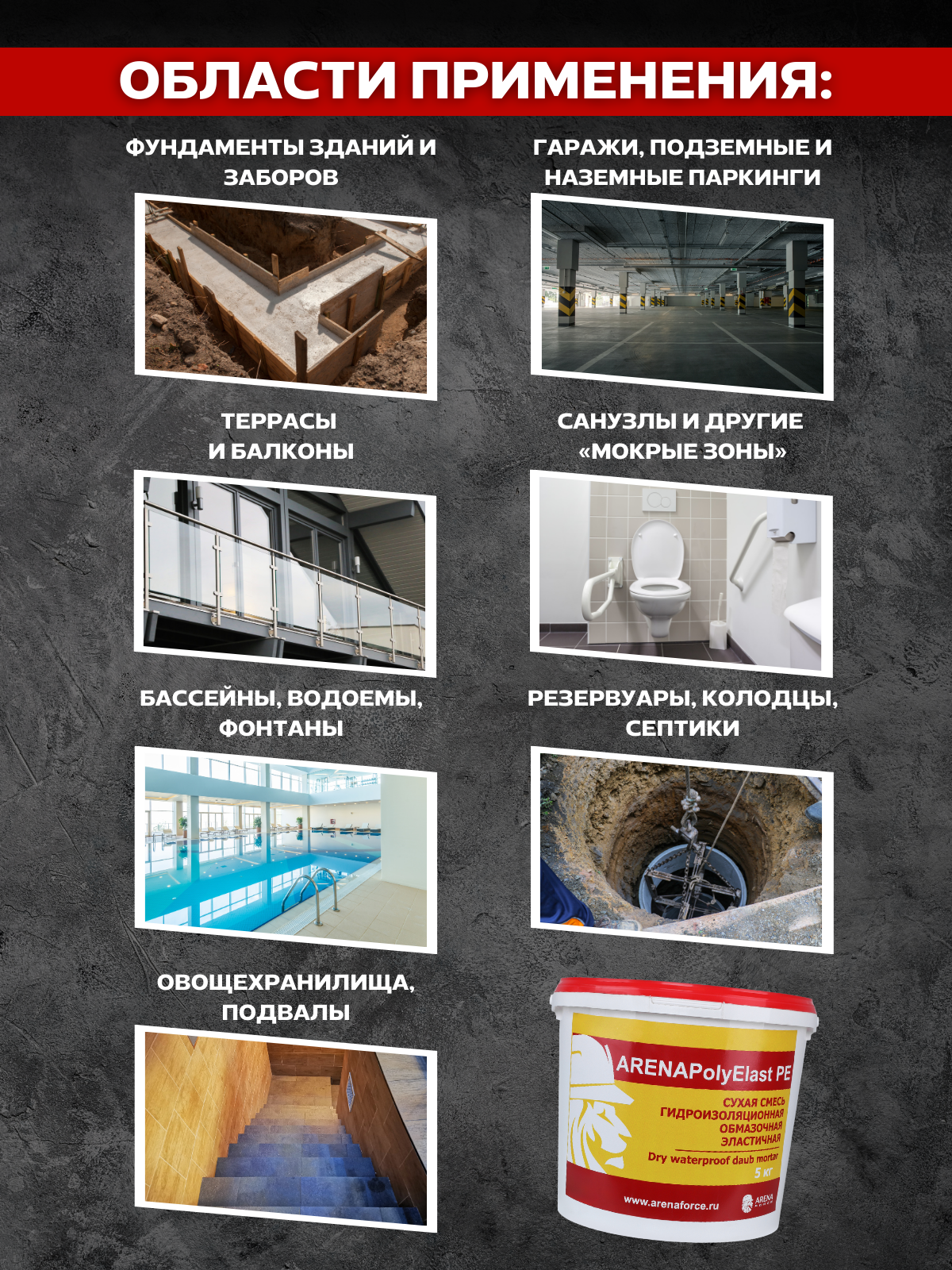 Обмазочная эластичная гидроизоляция для бетона ARENA PolyElast PE, 5 кг интересное: