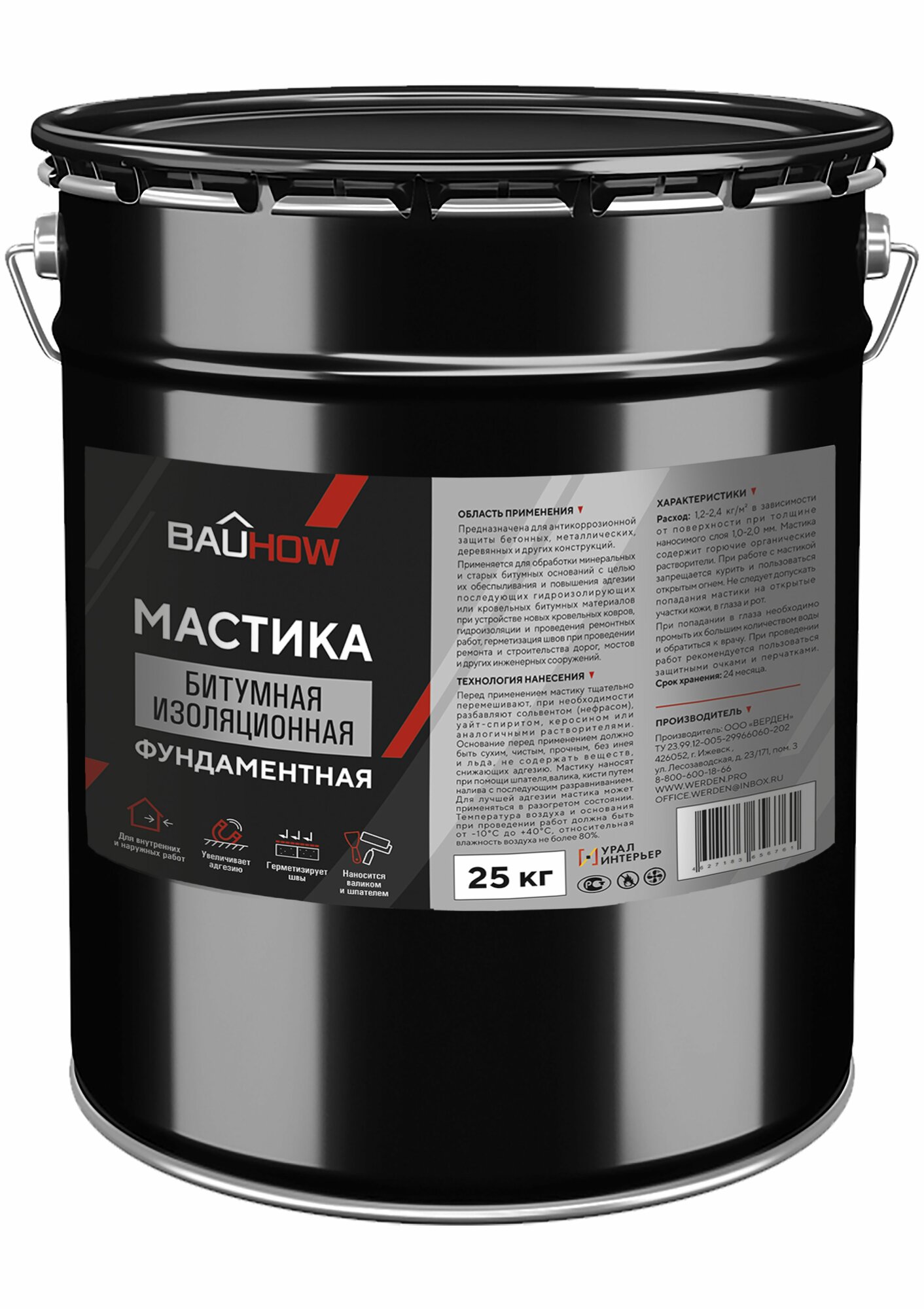 Мастика битумная изоляционная фундаментная BAUHOW 20л/25кг интересное: