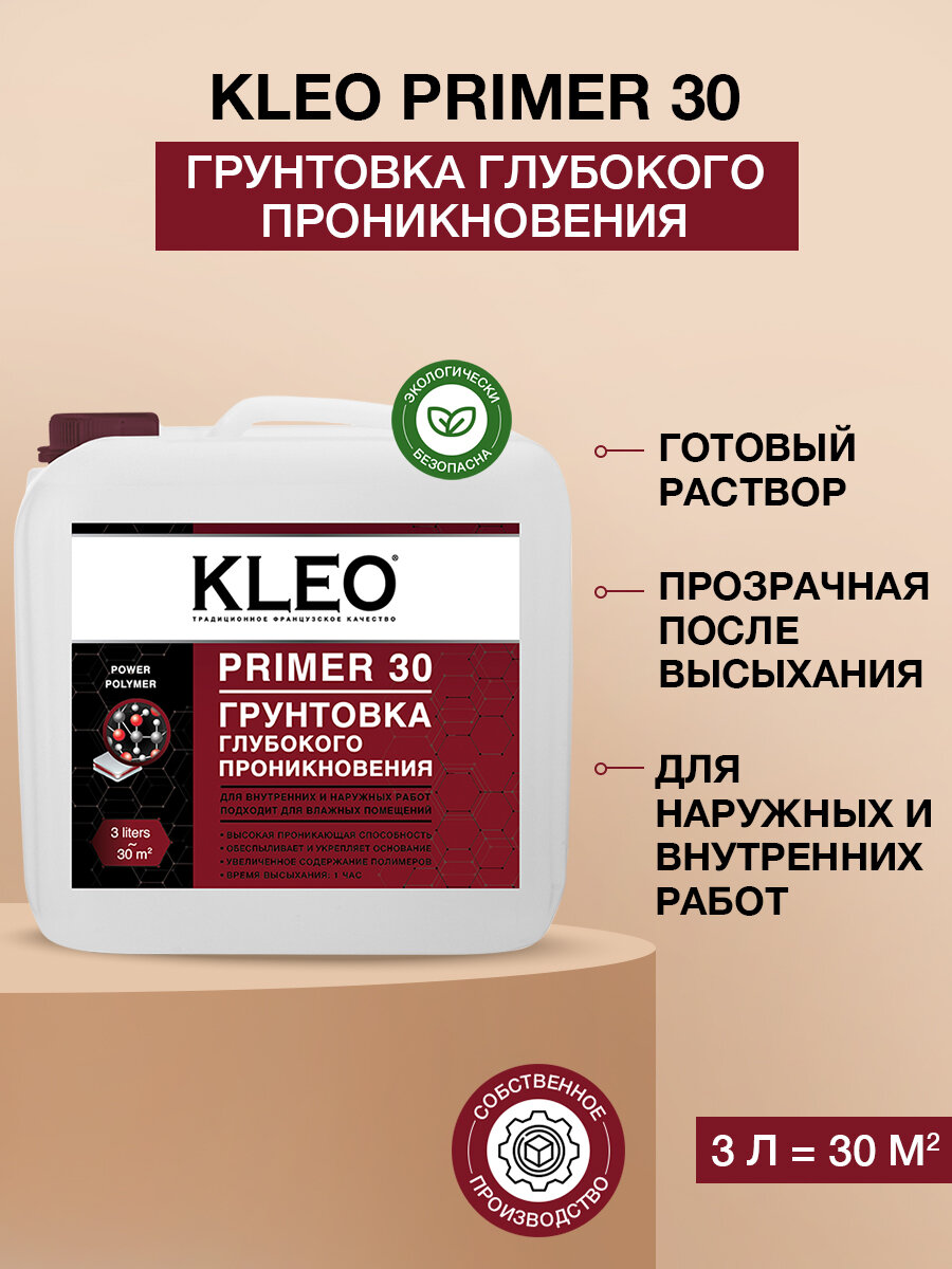 Купить Грунтовка акриловая глубокого проникновения для стен KLEO PRIMER 3л 30 кв.м.