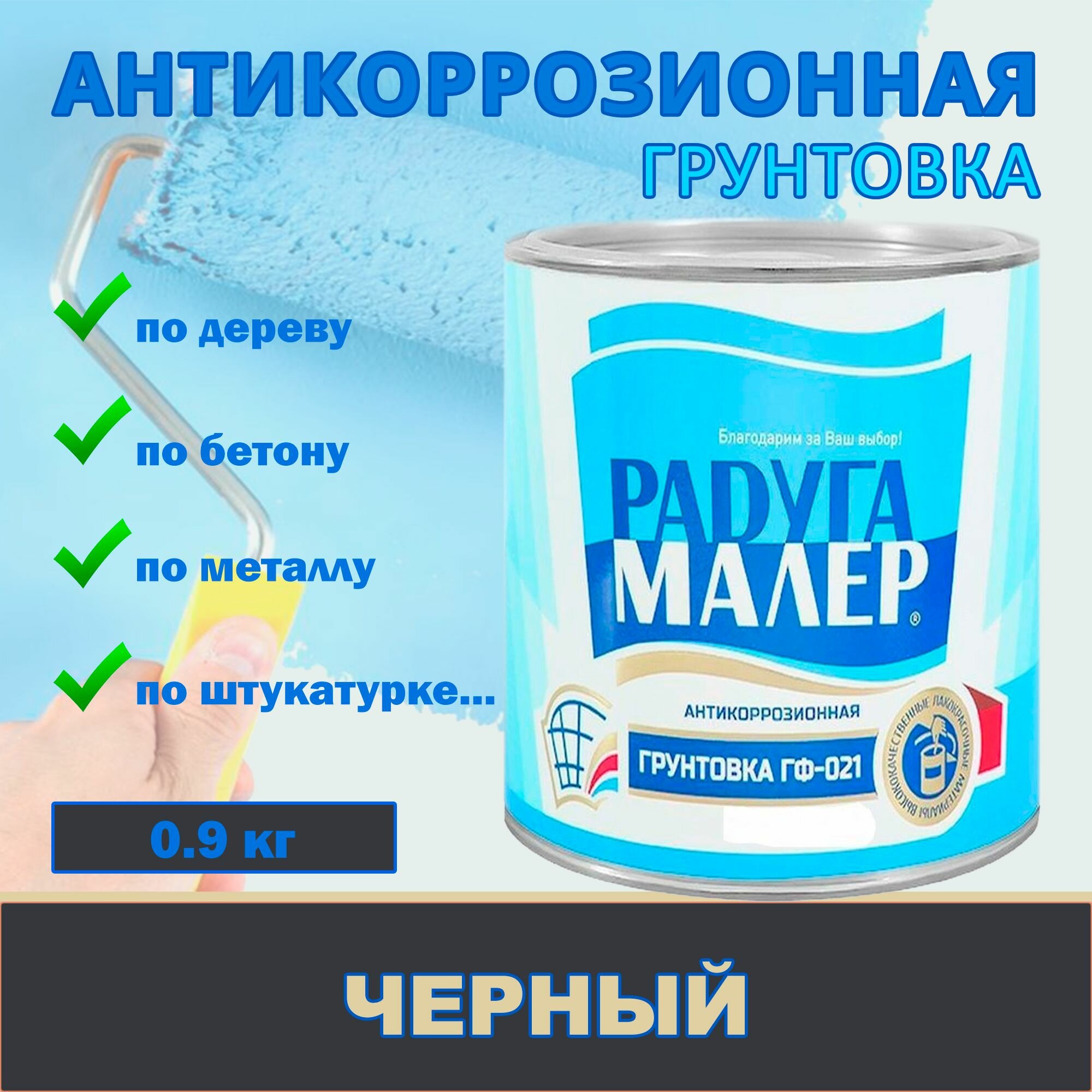 Купить Грунтовка ГФ-021 Черная Радугамалер антикоррозионная 0.9кг Грунт универсальный