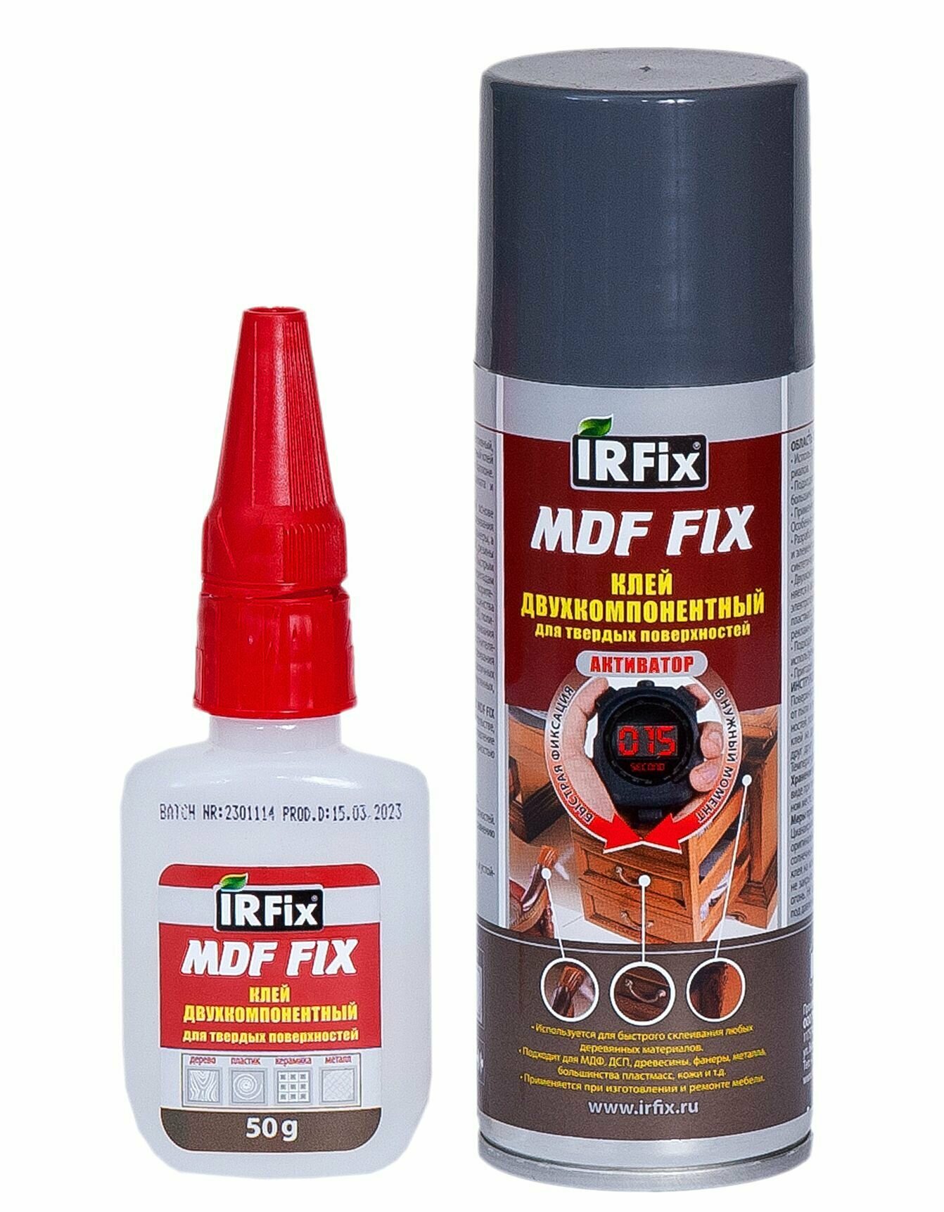 Клей Irfix, цианакрилатный, прозрачный, водостойкий, двухкомпонентный, 200 мл, 50 г, 20 250, MDF FIX