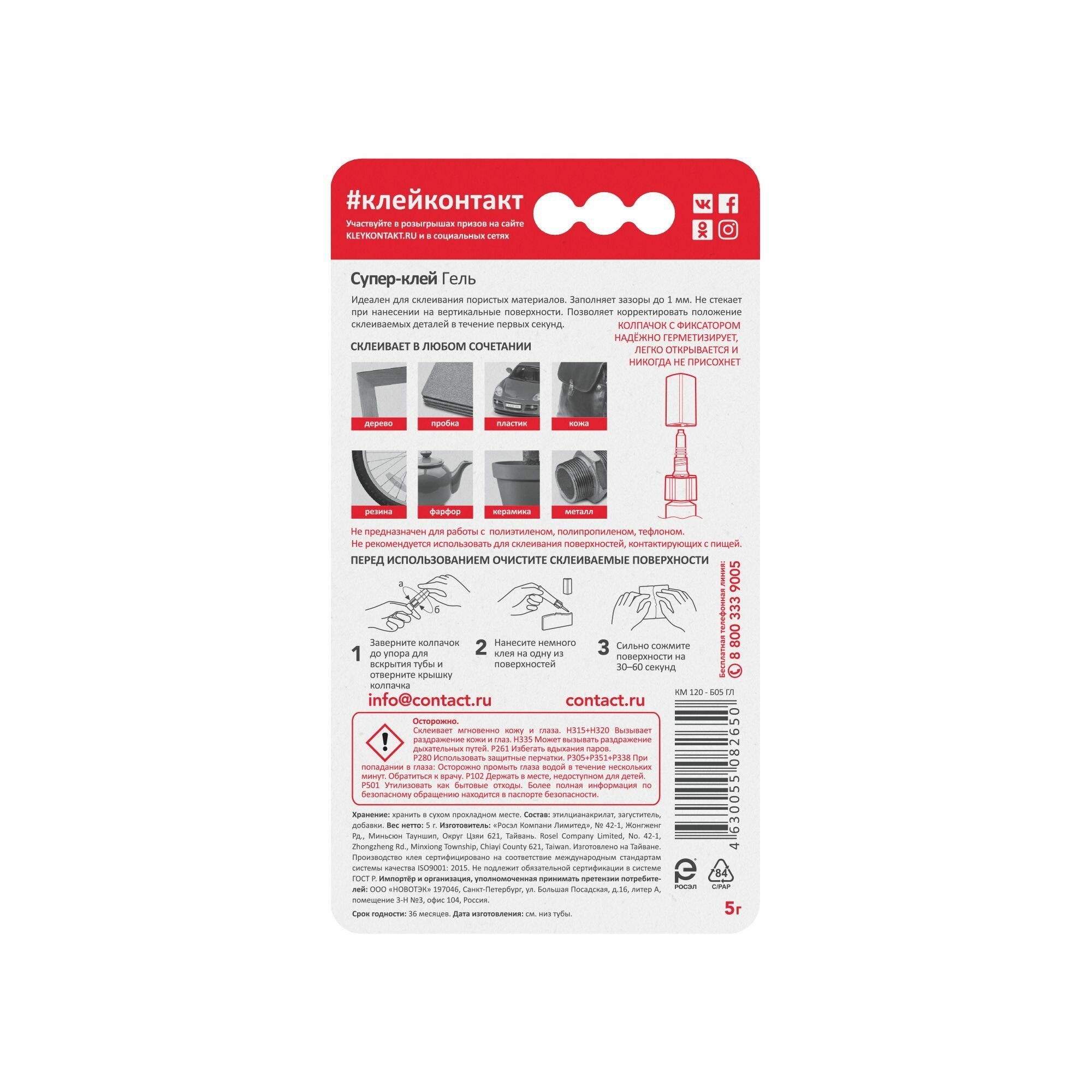 Клей универсальный этилцианакрилатый блистер 5г Гель, 23685, контакт интересное: