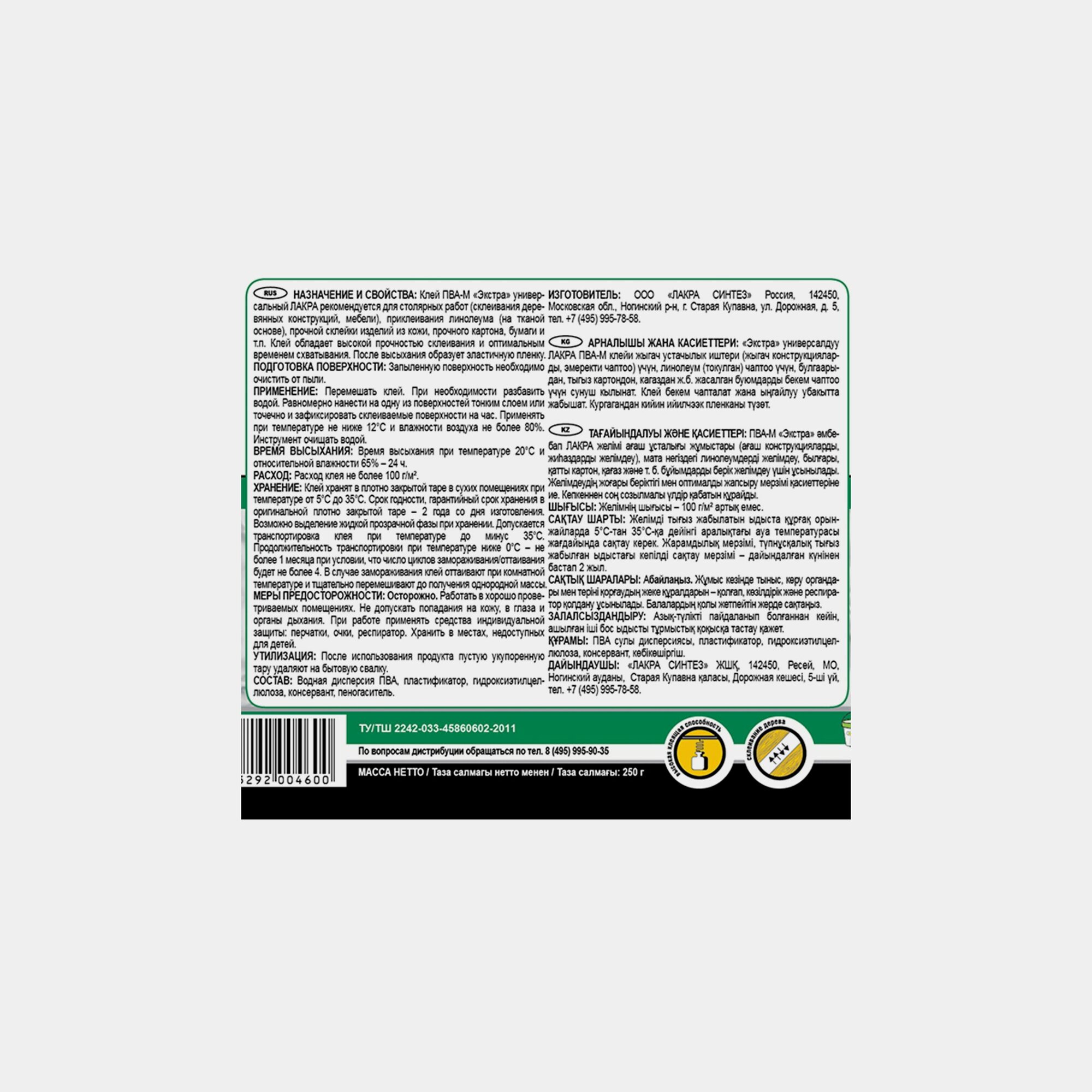| Дополнительная информация | Клей ПВА-М ЛАКРА Экстра универсальный 0,25кг, арт.экстра-250 |