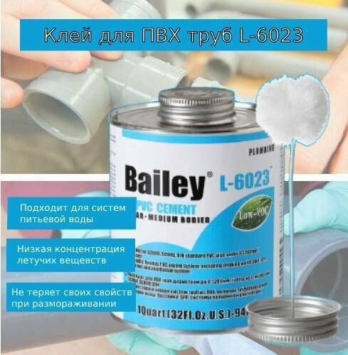 Клей для труб ПВХ Bailey L-6023, 946 мл