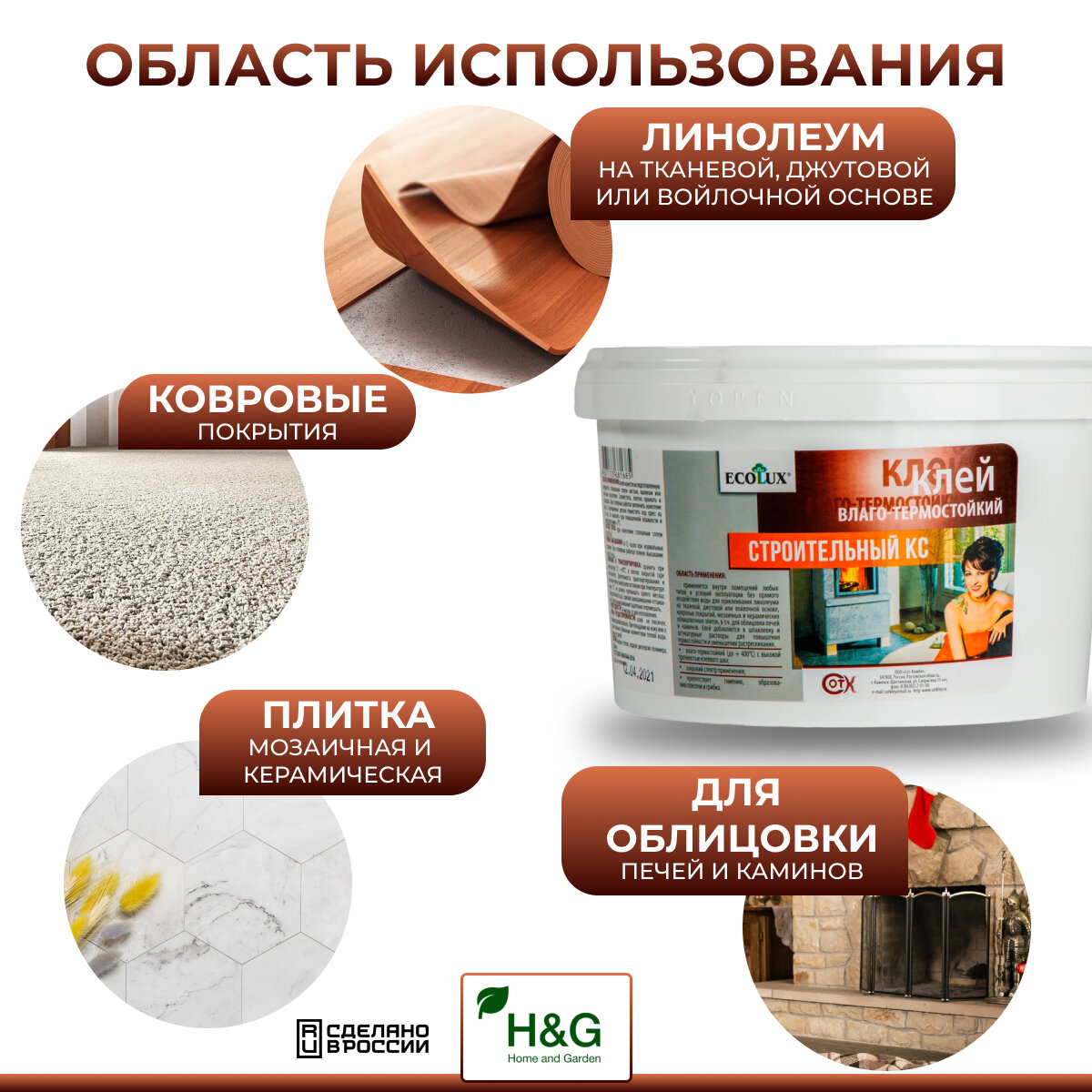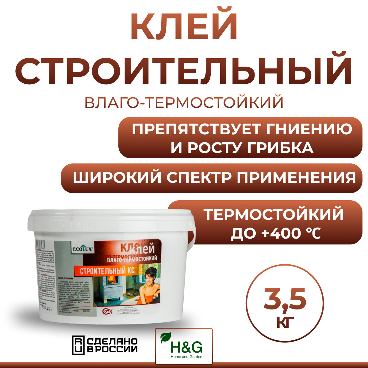 Клей строительный влагостойский и термостойкий до 400 градусов Ecolux КС, против гниения, образования плесени и грибка, ведерко, 3,5 кг