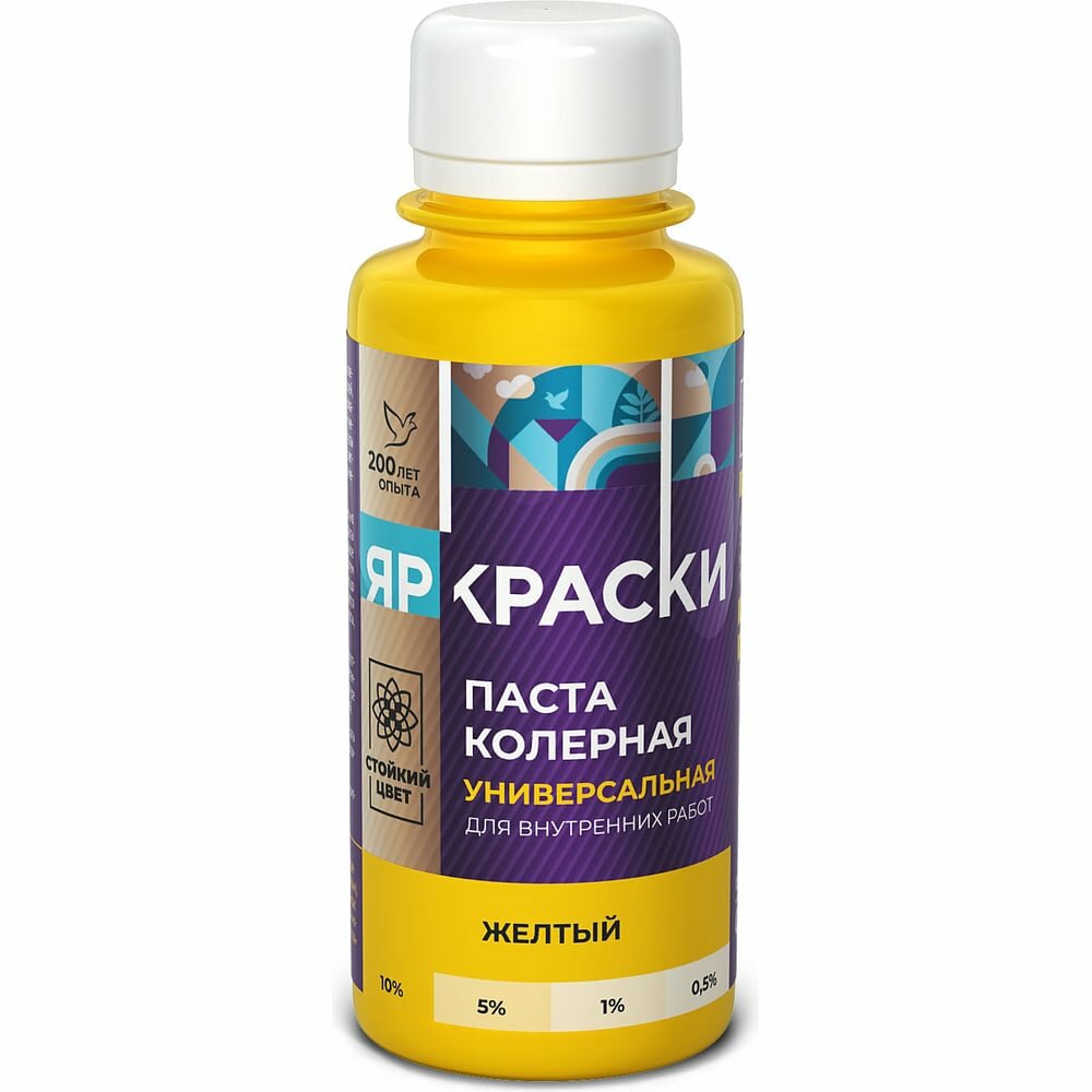 Ярославские краски Паста колерная универсальная желтый, бутылка 0,1 л О03809