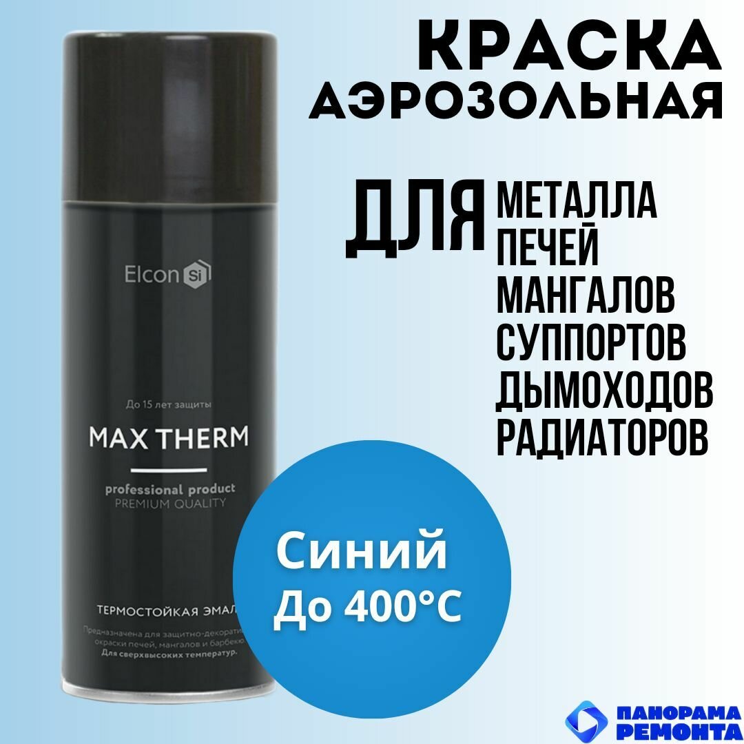 Купить Краска аэрозольная Elcon Max Therm Синий (до 400С) мангалов, быстросохнущая, термостойкая, аэрозоль 520 мл
