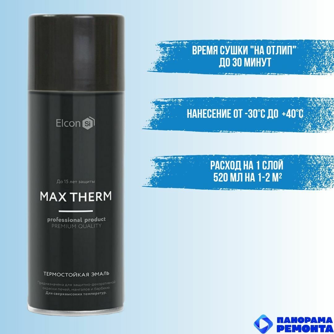 Эмаль Термостойкая Elcon Max Therm для Мангалов 520мл до +1000°С Аэрозоль, Черная*