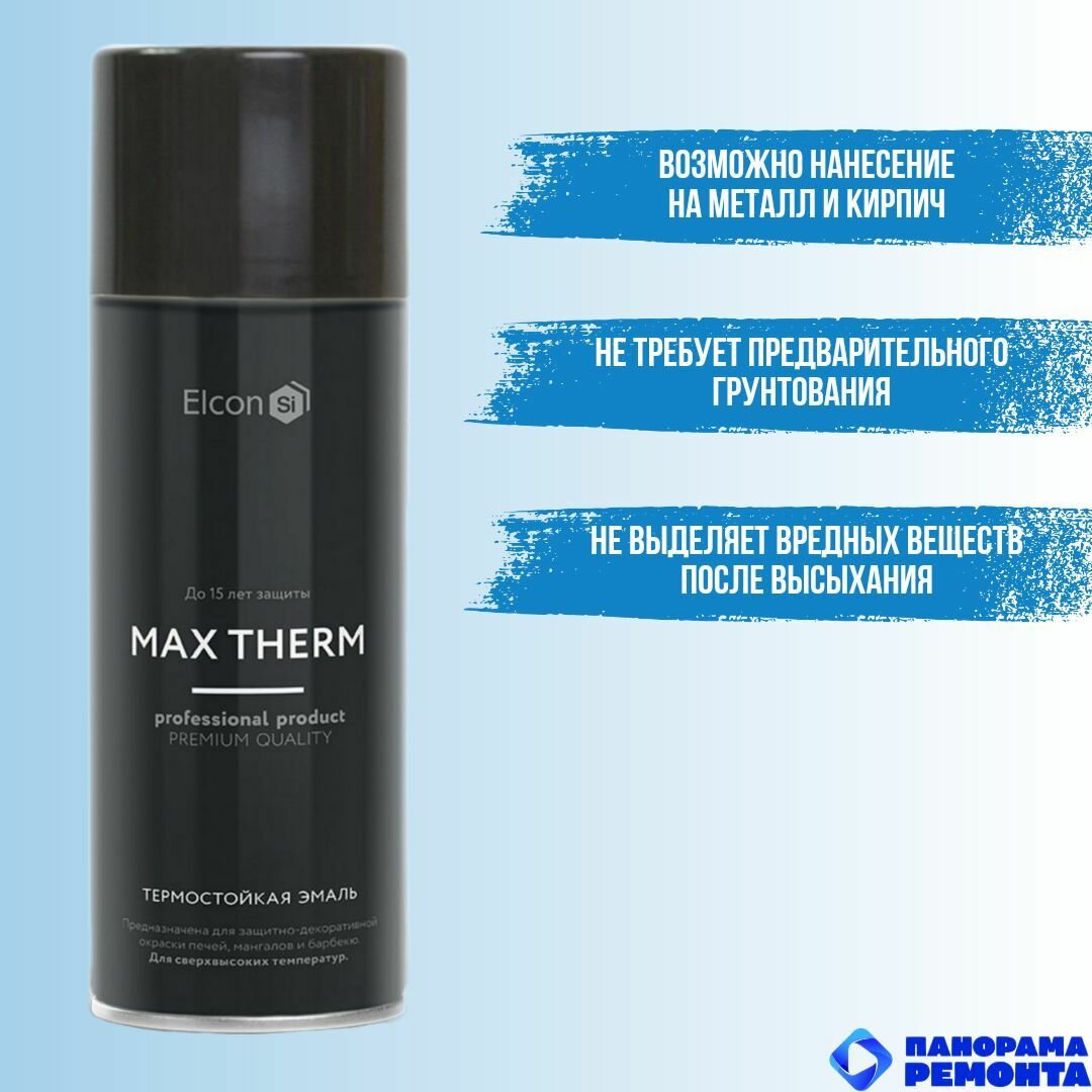 Краска аэрозольная Elcon Max Therm Черная (до 1000С) для мангалов, быстросохнущая, термостойкая, аэрозоль 520 мл