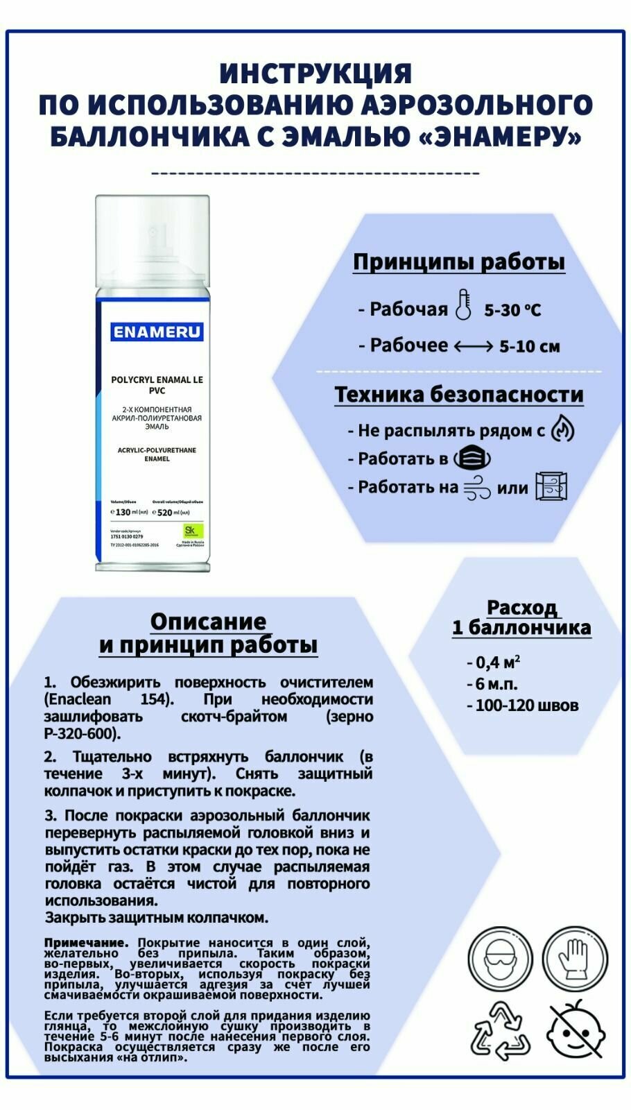 Структурная краска для ПВХ, пластика, окон Энамеру, Быстросохнущая, Акрил-полиуретановая, Полуматовая, 0.52 л, Бриллиантово-синий RAL 5007