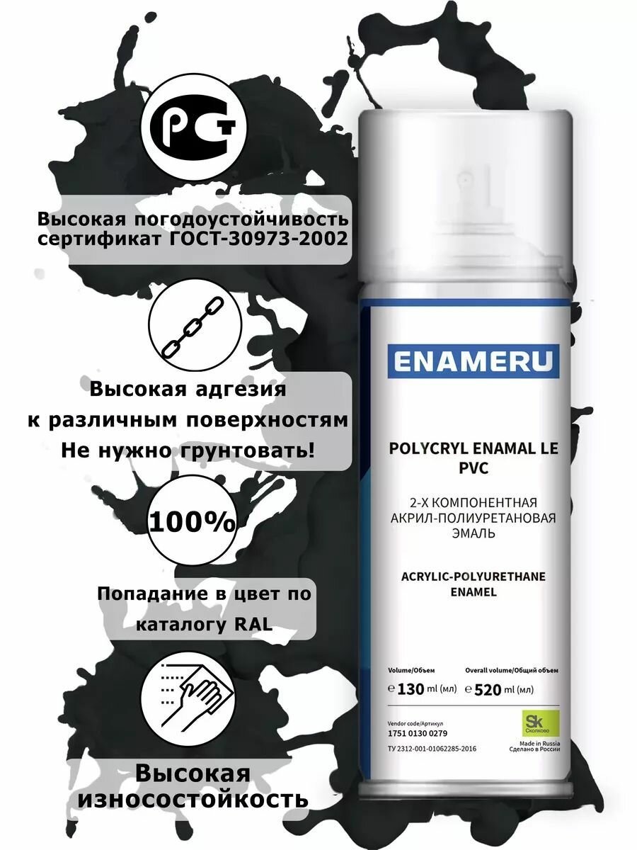 Структурная краска для ПВХ, пластика, окон Энамеру, Быстросохнущая, Акрил-полиуретановая, Полуматовая, 0.52 л, Транспортный черный RAL 9017
