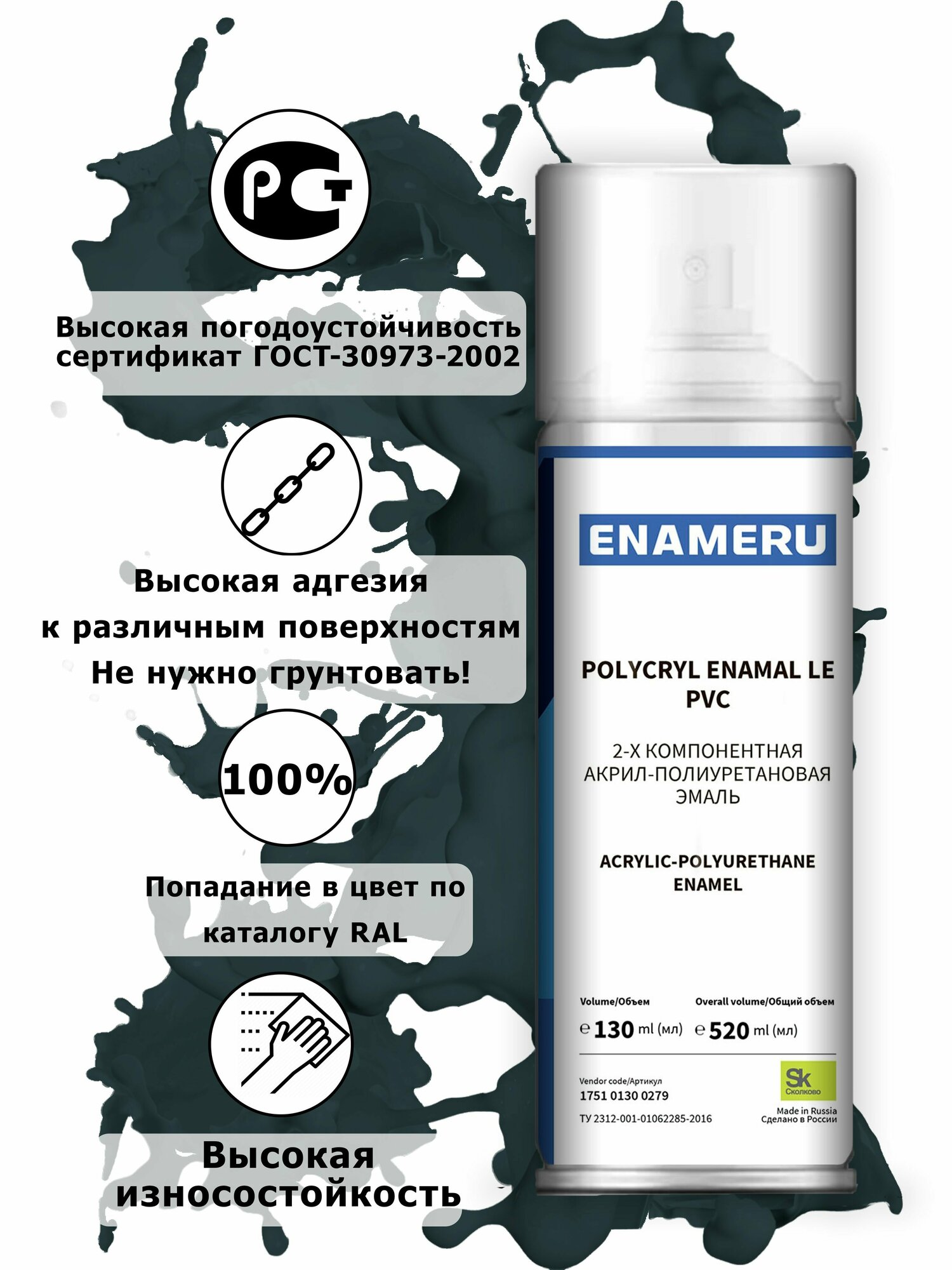 Структурная краска для ПВХ, пластика, окон Энамеру, Быстросохнущая, Акрил-полиуретановая, Полуматовая, 0.52 л, Черно-серый RAL 7021