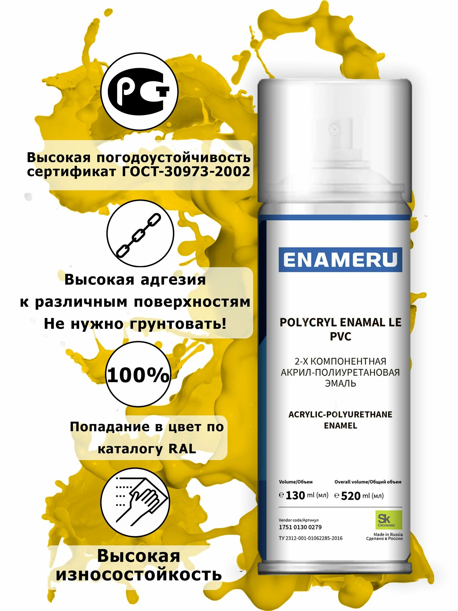 Структурная краска для ПВХ, пластика, окон Энамеру, Быстросохнущая, Акрил-полиуретановая, Полуматовая, 0.52 л, Охра желтая RAL 1024