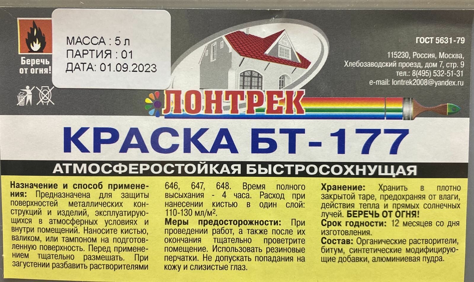 Краска БТ-177 Серебрянка, 5 л., Лонтрек интересное: