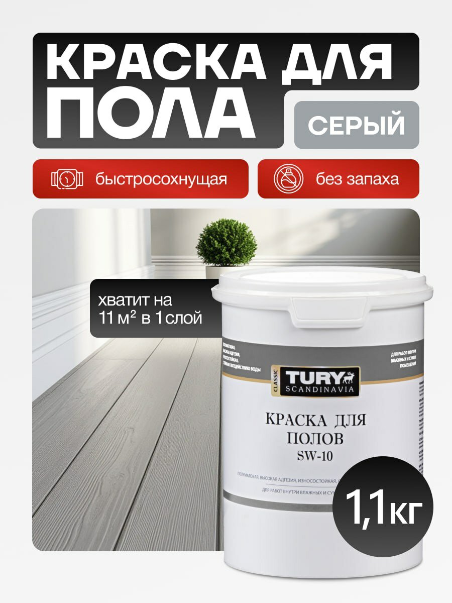 Краска TURY для пола бетонного и деревянного, линолеума, плитки, без запаха, быстросохнущая, серая, 1,1 кг интересное: