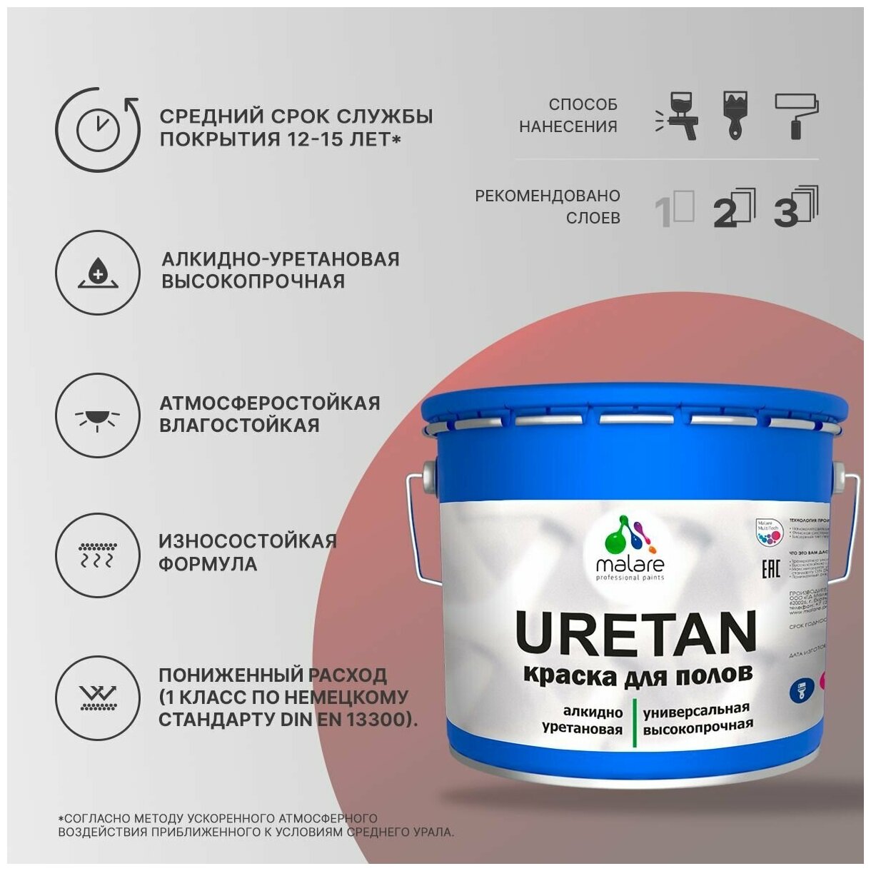Краска Malare URETAN для бетонного пола, для деревянного пола, краска по металлу, износостойкая, полуматовая, черная, 2,4 кг