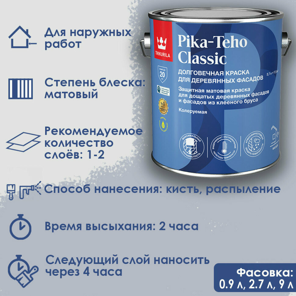 TIKKURILA PIKA TEHO CLASSIC краска акрилатная для деревянных фасадов матовая база A, 9 л