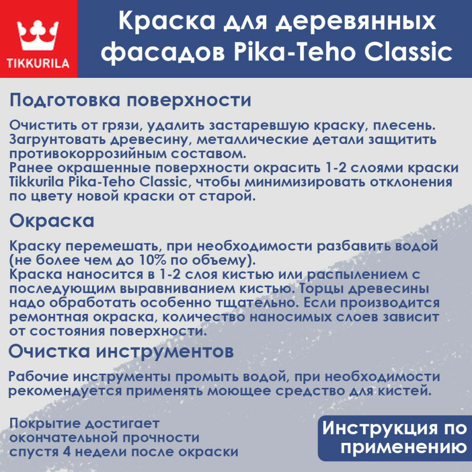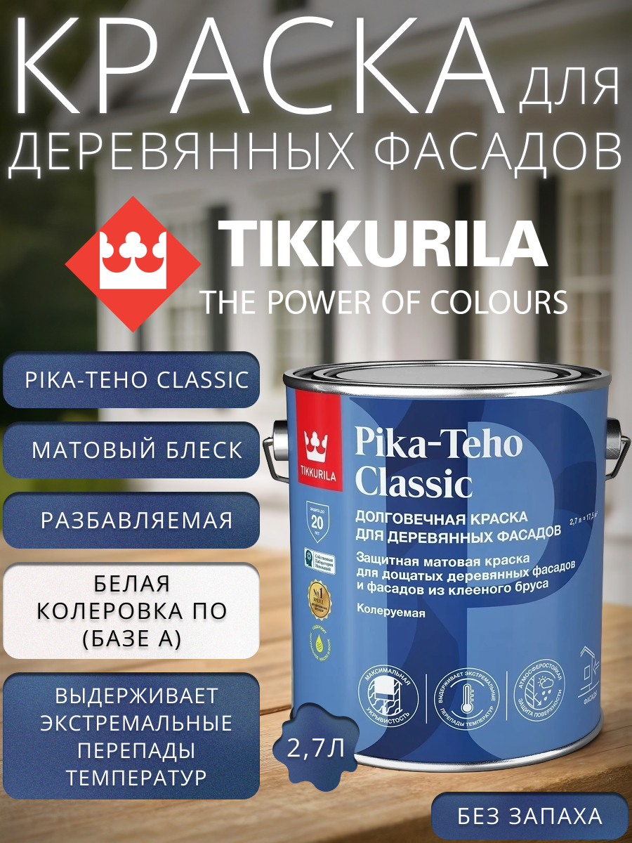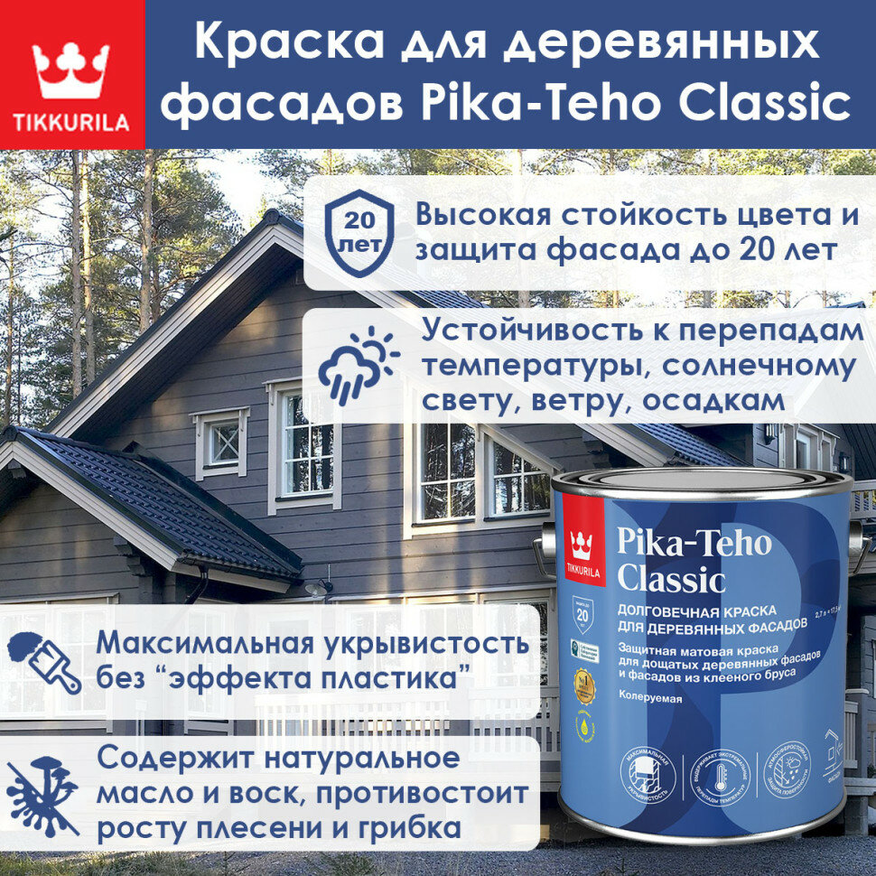 Краска для деревянных фасадов Tikkurila Pika-Teho Classic база А 2.7 л интересное: