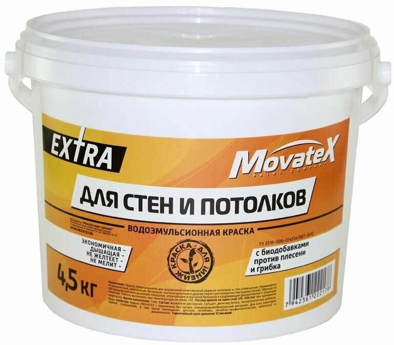 Movatex Краска водоэмульсионная EXTRA для стен и потолков 4,5кг Т11871 интересное: