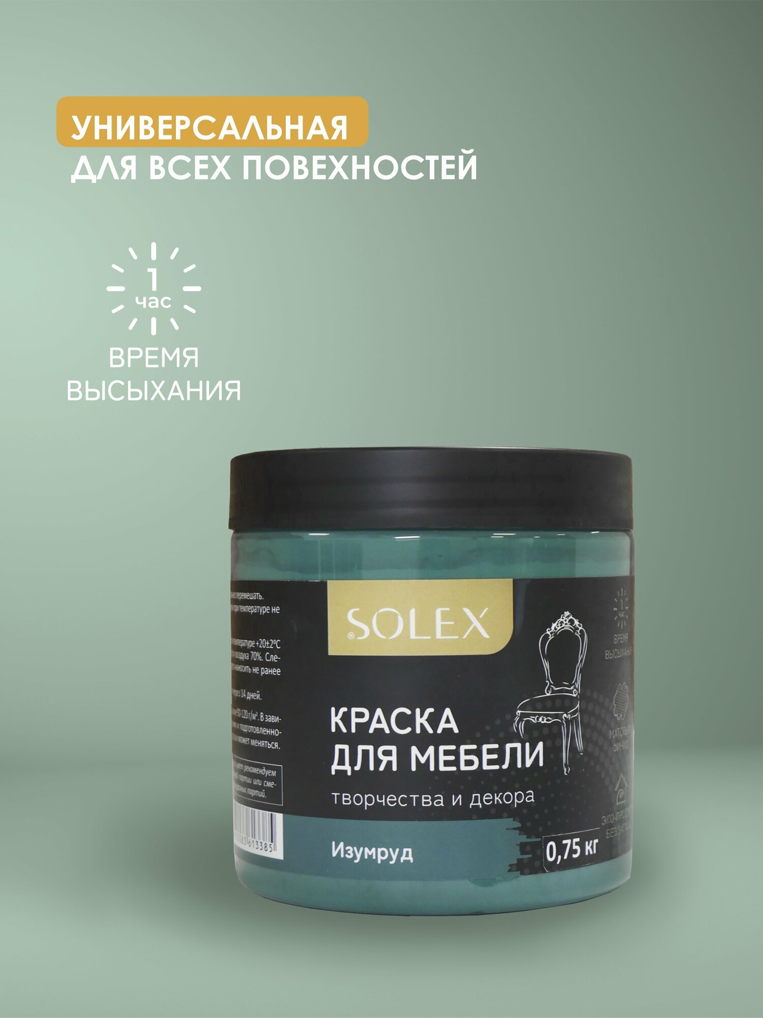 Краска для мебели и декора SOLEX универсальная Изумруд 0,75кг