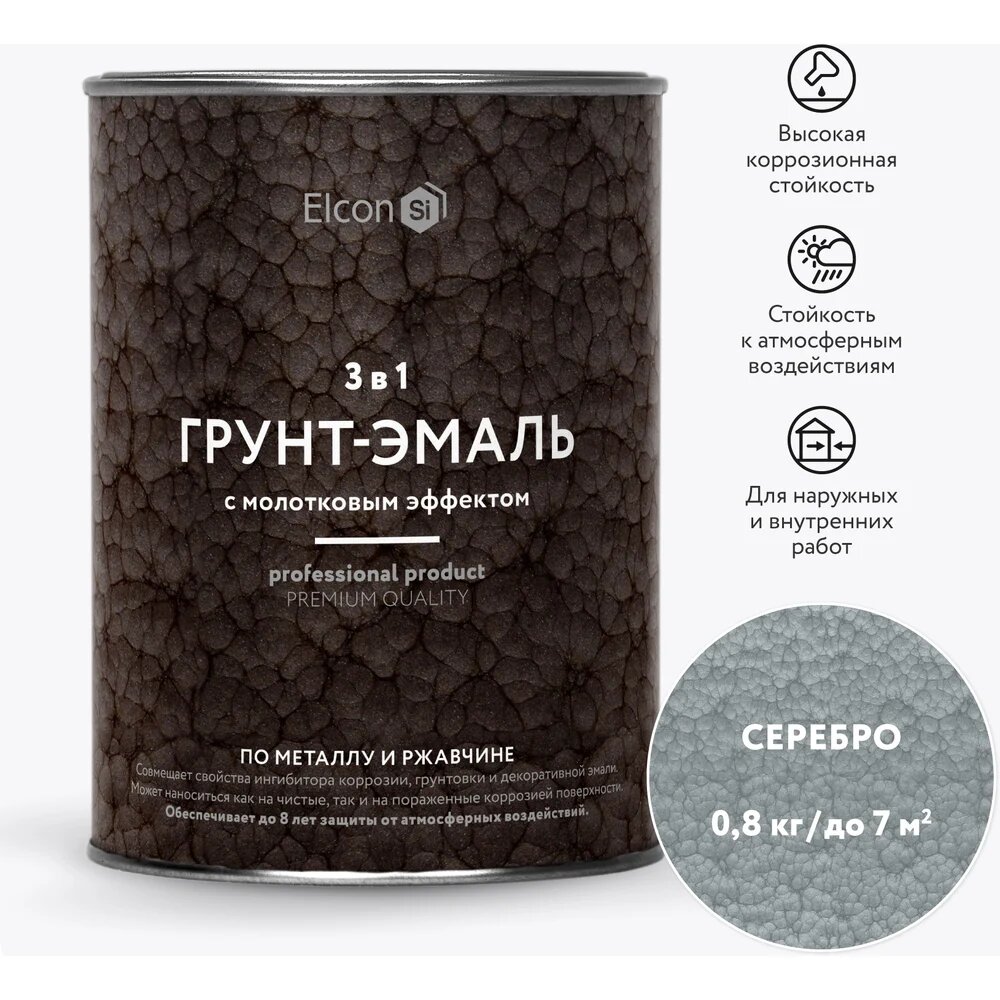 Краска c Молотковым Эффектом Elcon Smith 0.4кг По Ржавчине 3 в 1, Серебро / Элкон Смит.