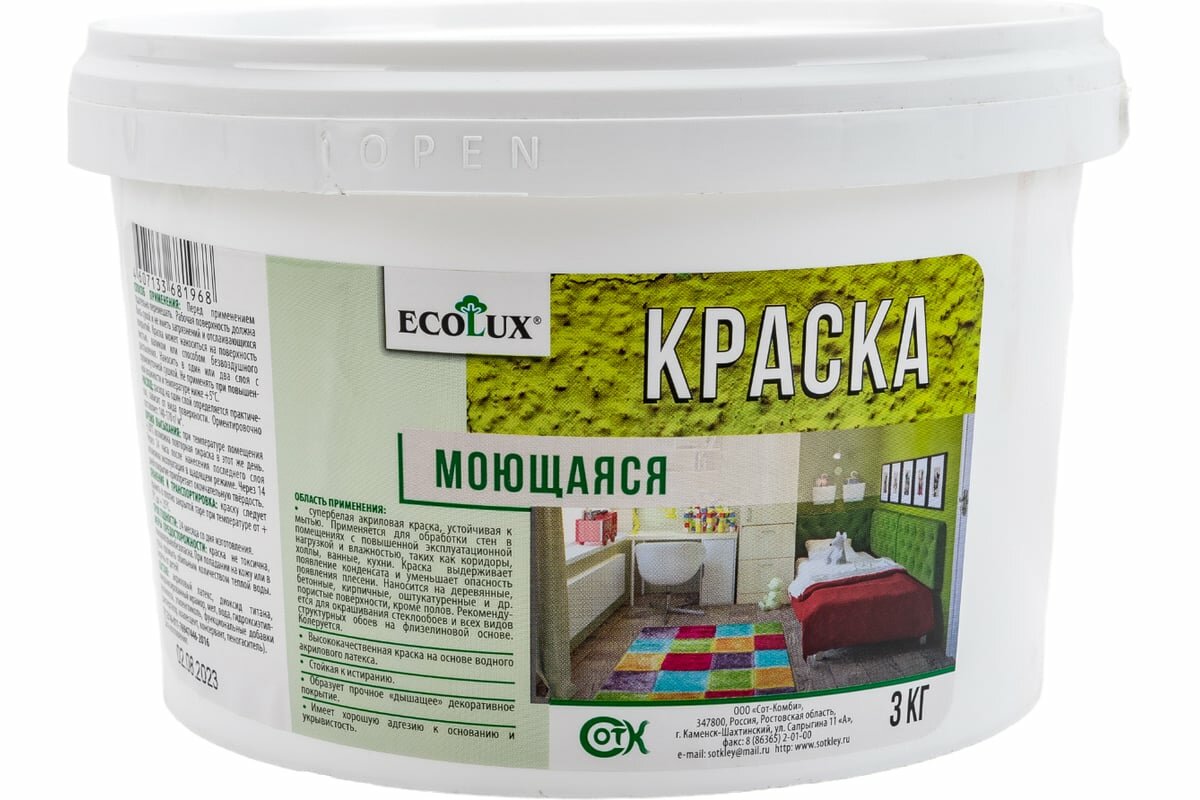 ECOLUX Краска моющаяся 3,0 кг 4607133681968 интересное: