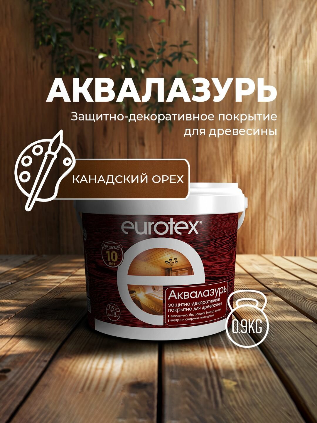 Аквалазурь EUROTEX защитно-декоративное покрытие для дерева, Канадский орех 0,9кг