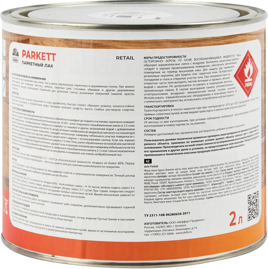Лак Dufa PARKETT паркетный полуматовый 2л интересное: