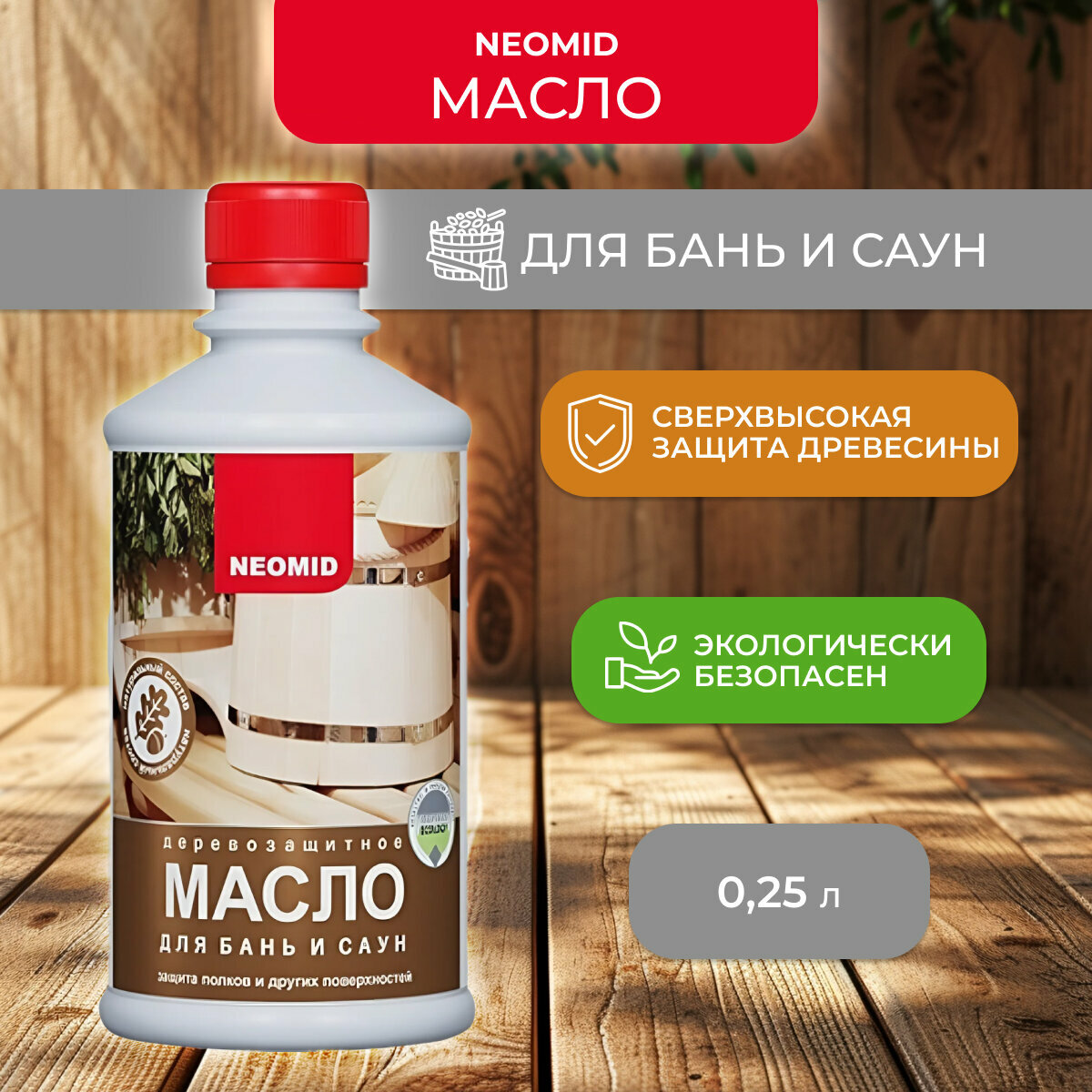 Масло для бань и саун NEOMID (Бесцветный, 0,25л) / Для полков в парилке, для помывочной, для предбанника