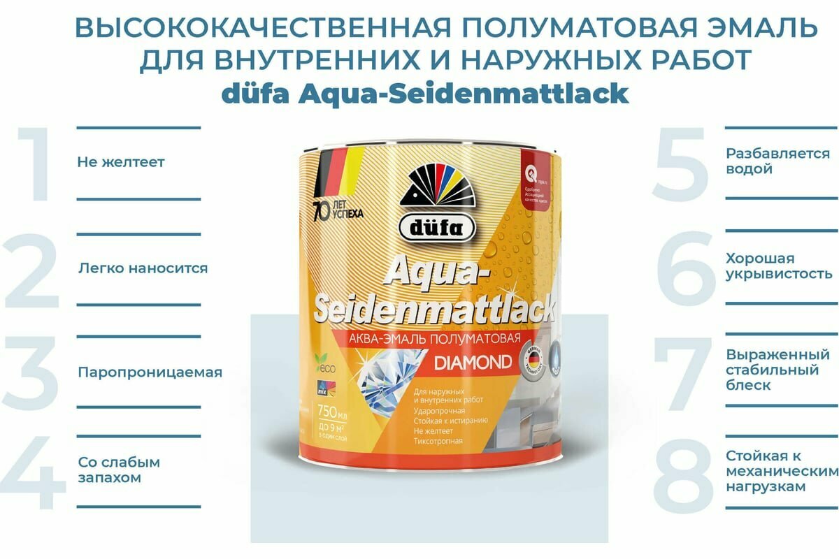 Эмаль на водной основе универсальная Dufa Aqua-Seidenmattlack полуматовая (0,75л) интересное: