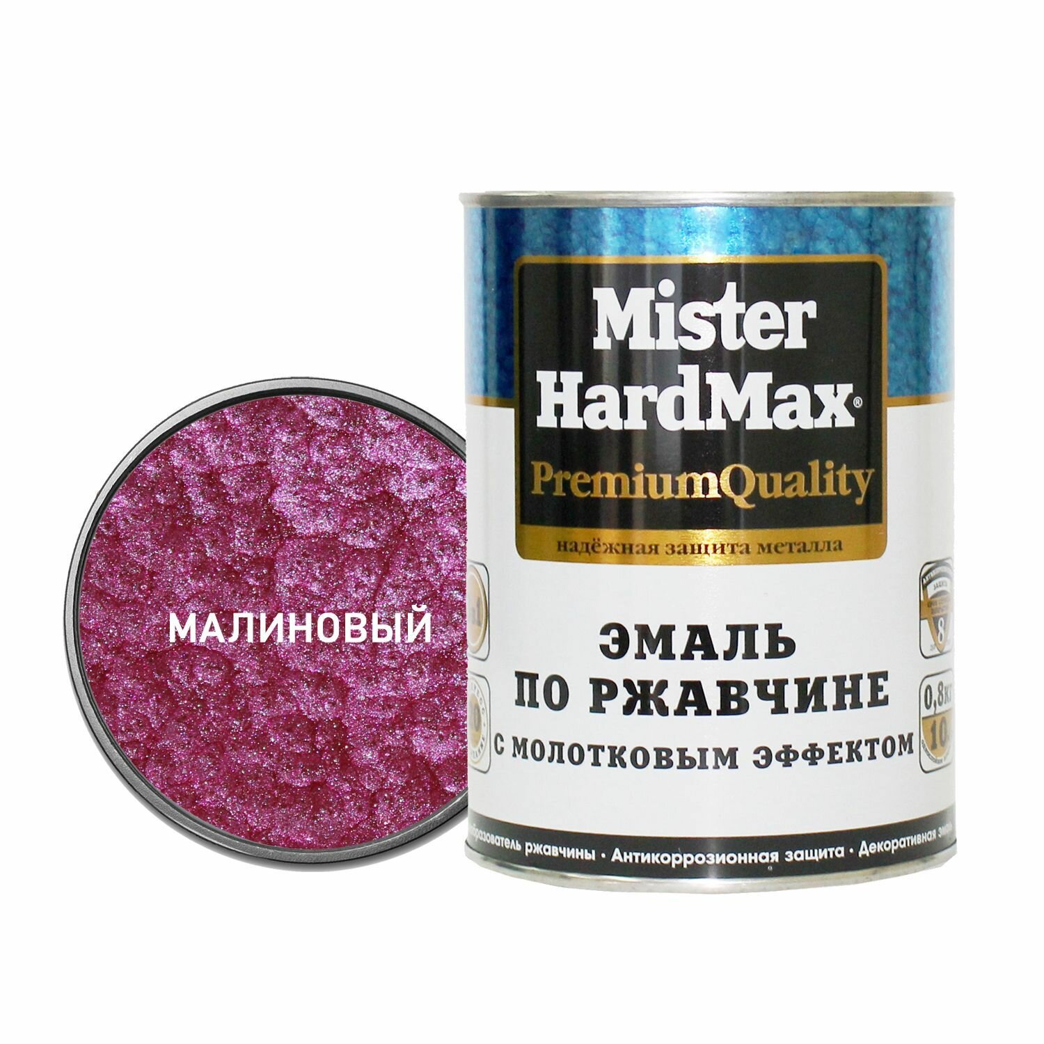 HardMax Эмаль молотковая 3 в 1 краска по металлу, по ржавчине , глянцевое покрытие, малиновый, 0.8 кг