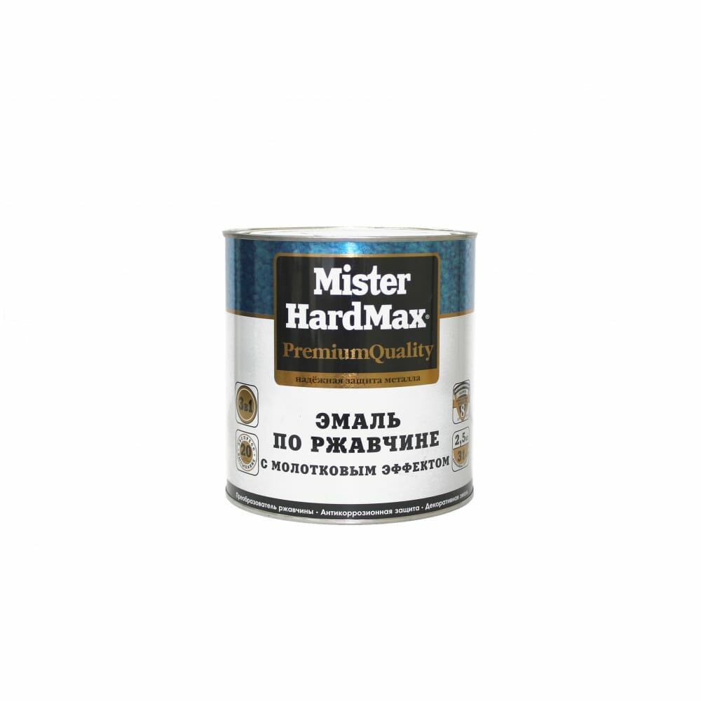 HardMax Эмаль молотковая 3 в 1 краска по металлу, по ржавчине , глянцевое покрытие, сине-голубой, 0.8 кг