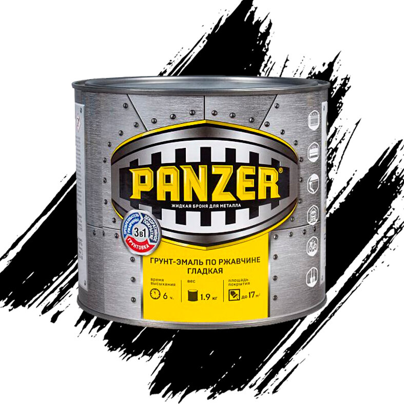 Грунт- эмаль ПО ржавчине гладкая "PANZER" черная 1,9 КГ, полуглянцевая, 1ШТ, жестяная банка