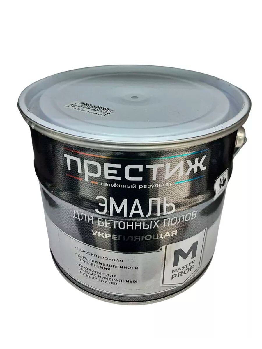 Эмаль для бетонных полов укрепляющая Престиж, полуматовая, 10 кг, серая, 1шт, металлическое ведро