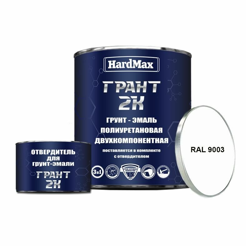 Купить HardMax Грунт-эмаль Грант, краска 2-х компонентная полиуретановая / Быстросохнущая, Гладкая, Полуглянцевое покрытие, 2 л, 2.19 кг, RAL 9003 Сигнально-белый