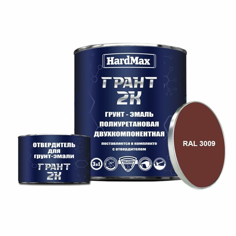 Купить HardMax Грунт-эмаль Грант, краска 2-х компонентная полиуретановая / Быстросохнущая, Гладкая, Полуглянцевое покрытие, 2 л, 2.19 кг, RAL 3009 Оксид красный