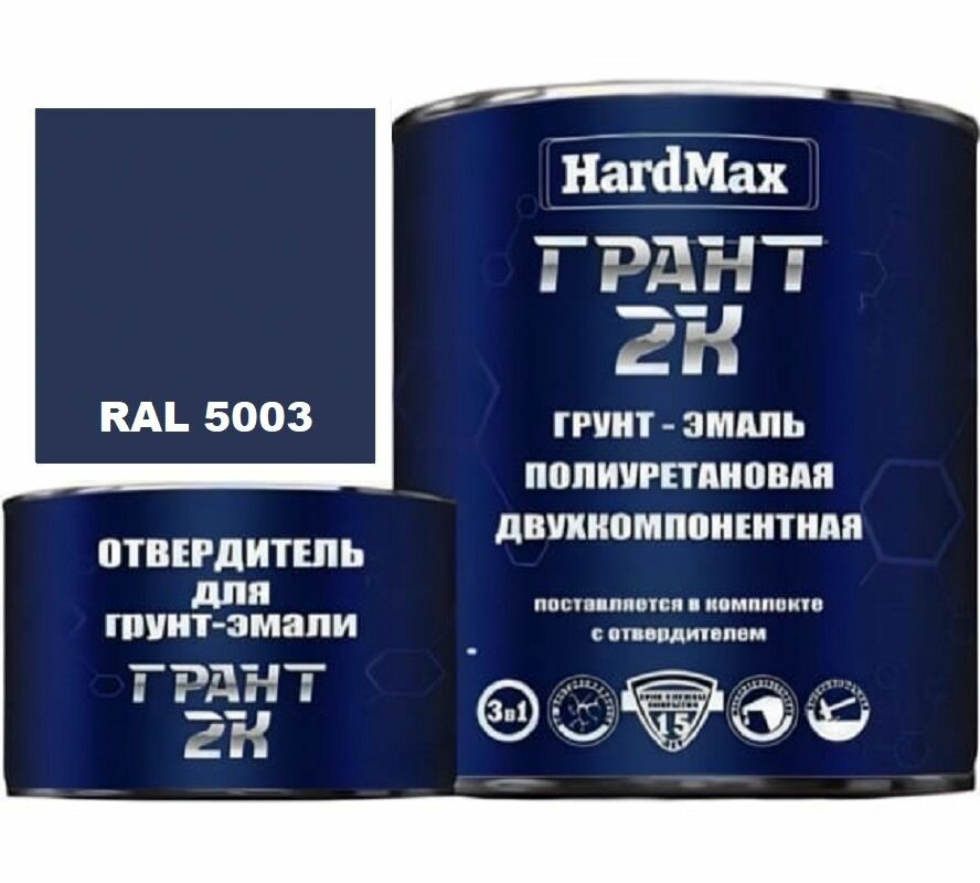 Купить HardMax Грунт-эмаль Грант, краска 2-х компонентная полиуретановая / Быстросохнущая, Гладкая, Полуглянцевое покрытие, 2 л, 2.19 кг, RAL 5003 Синий сапфир