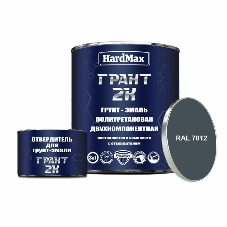 Купить HardMax Грунт-эмаль Грант, краска 2-х компонентная полиуретановая / Быстросохнущая, Гладкая, Полуглянцевое покрытие, 2 л, 2.19 кг, RAL 7012 Базальтово-серый