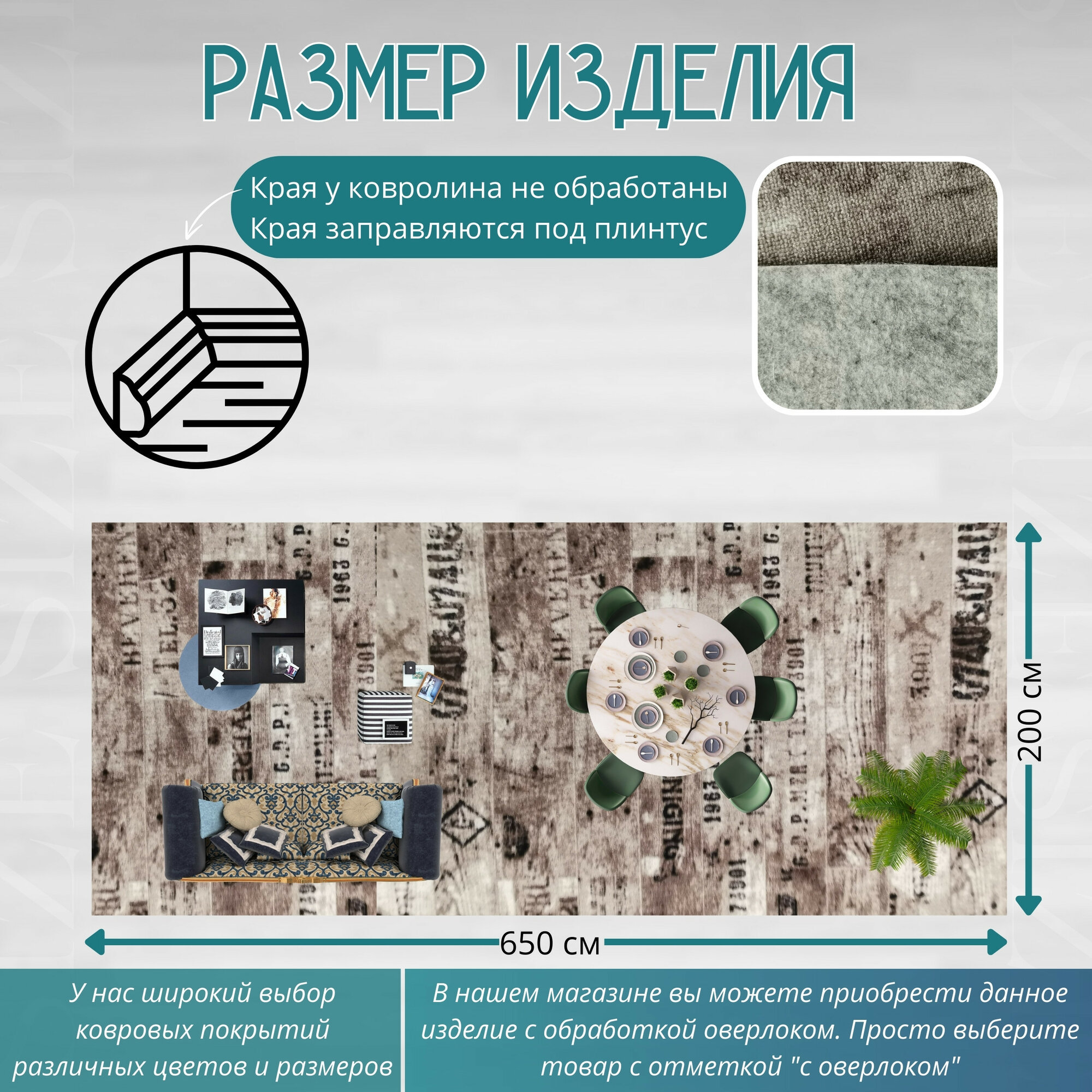 СохранитьКовролин метражом 2х6,5 м, без ворса "Шрифт", коричневый без оверлока интересное: