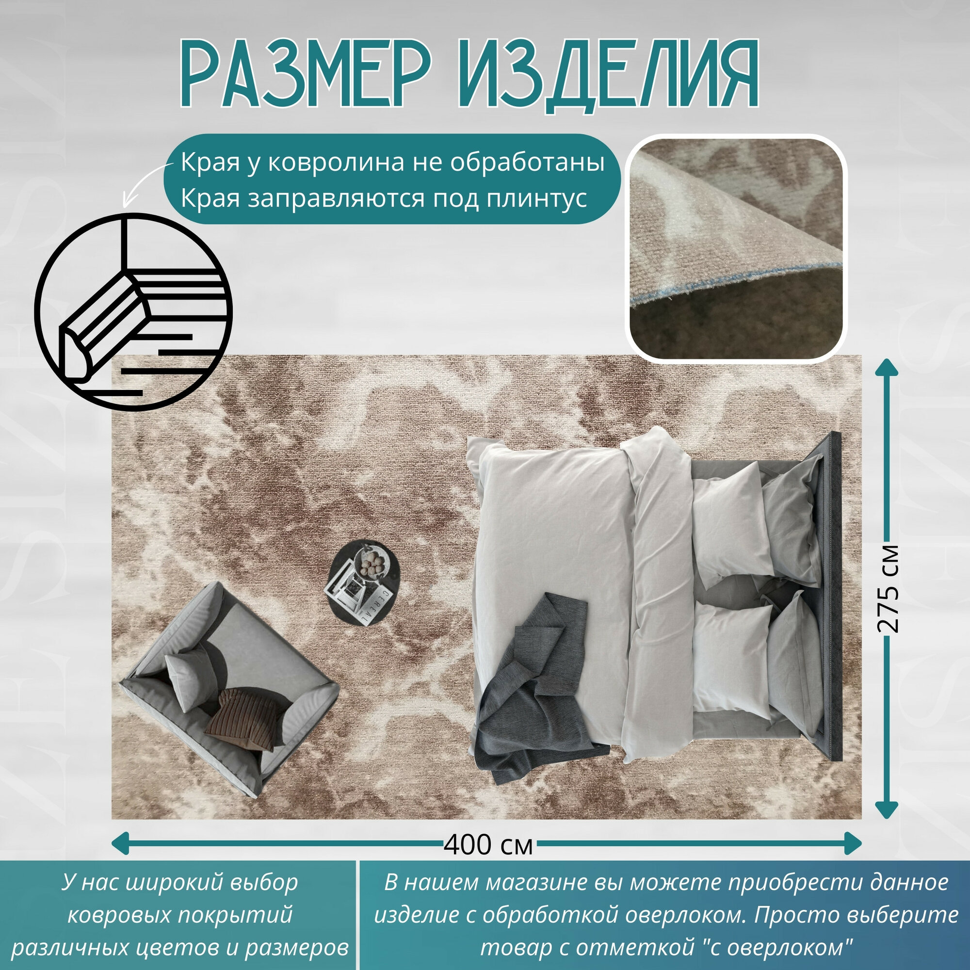 СохранитьКовролин метражом 4х2,75 м, без ворса "Мрамор", бежевый без оверлока интересное: