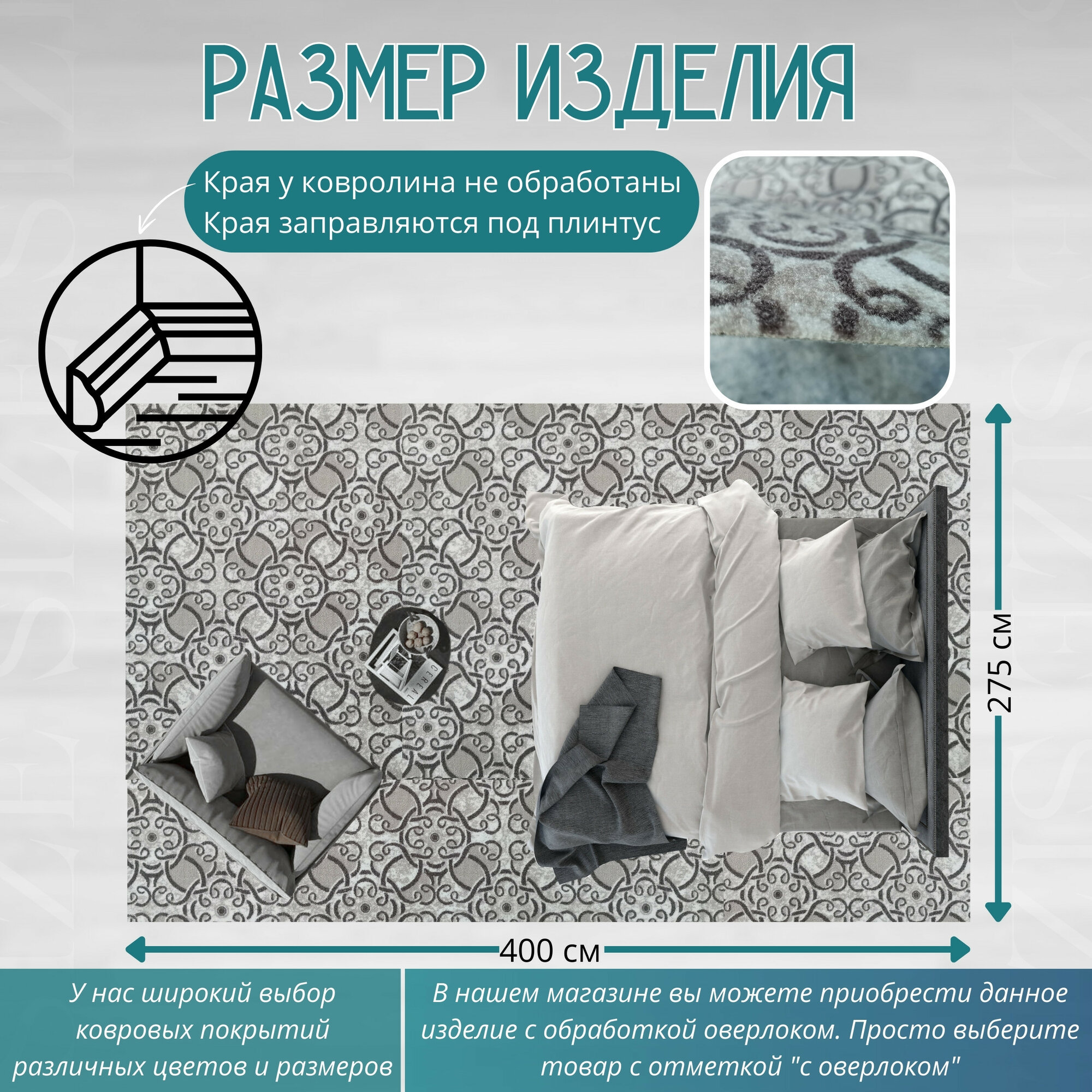 СохранитьКовролин метражом 4х2,75 м, без ворса "Графит цветком", бежевый без оверлока интересное: