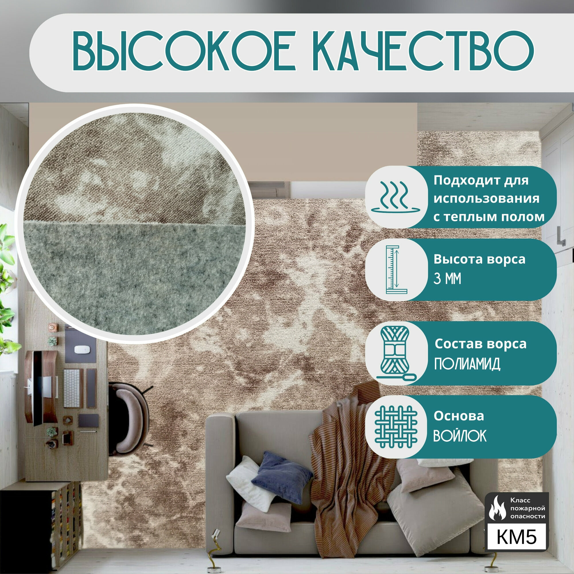 Ковролин метражом 3,5х3 м, без ворса "Мрамор", бежевый без оверлока