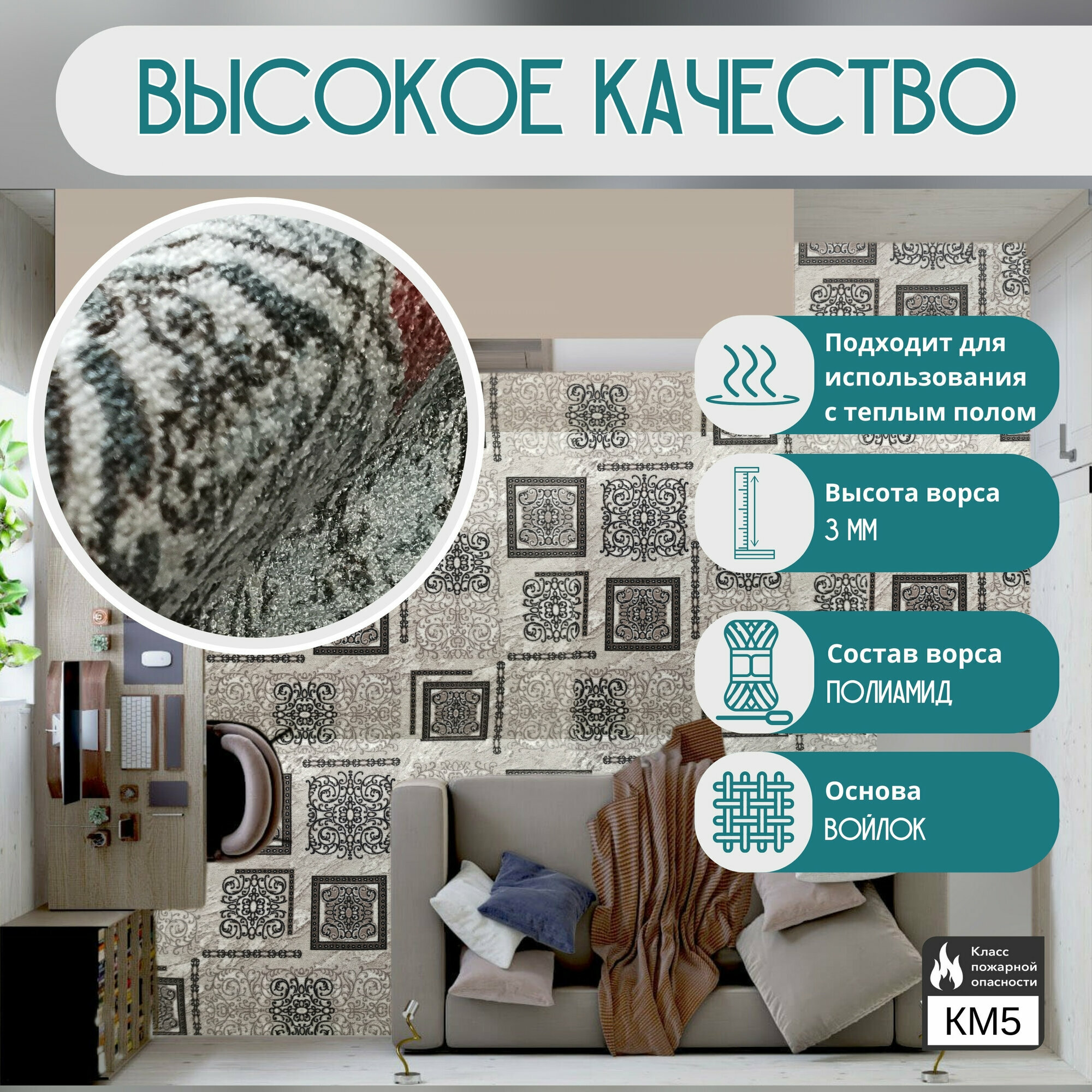 Купить Ковролин метражом 3х5 м, без ворса "Узор серо-коричневый" без оверлока