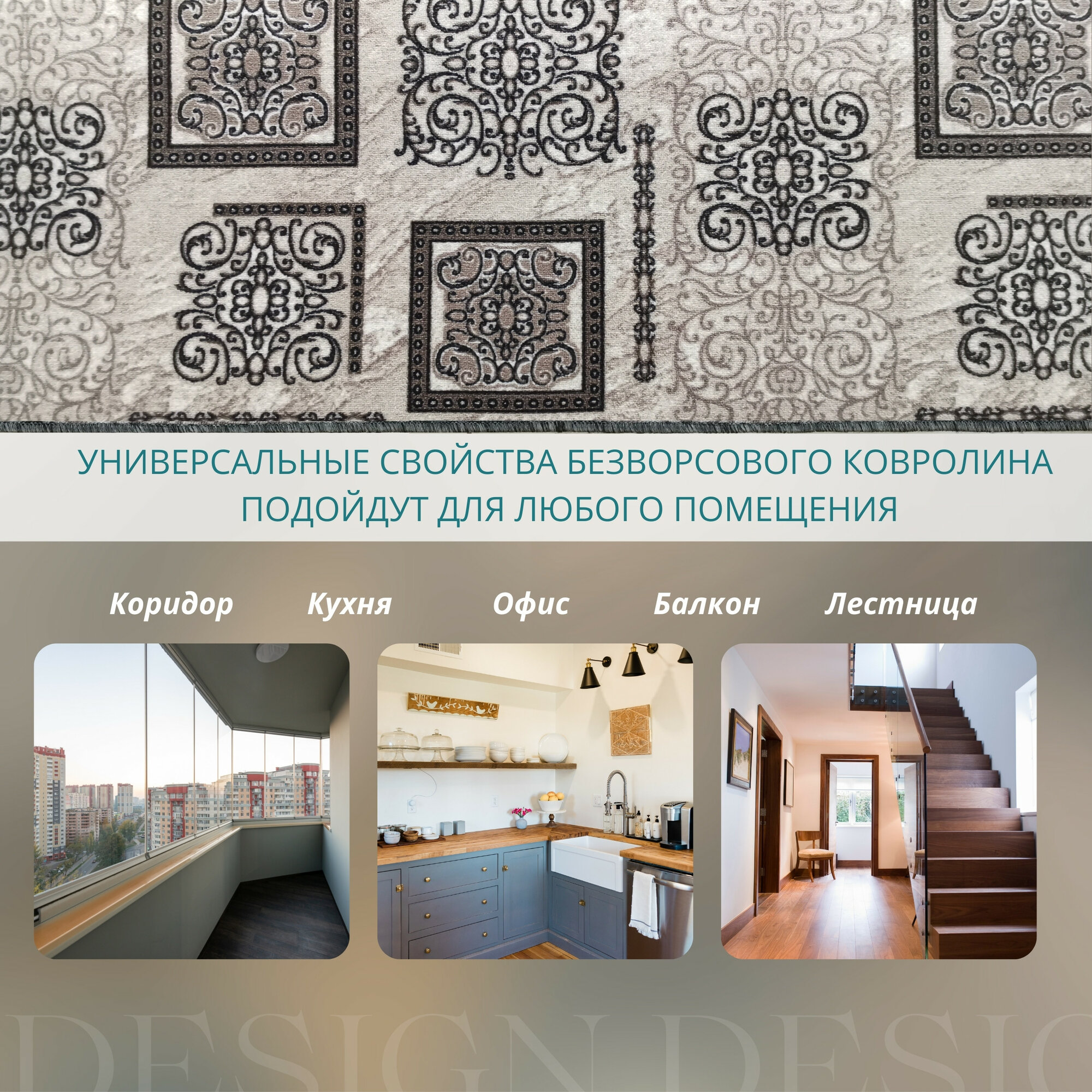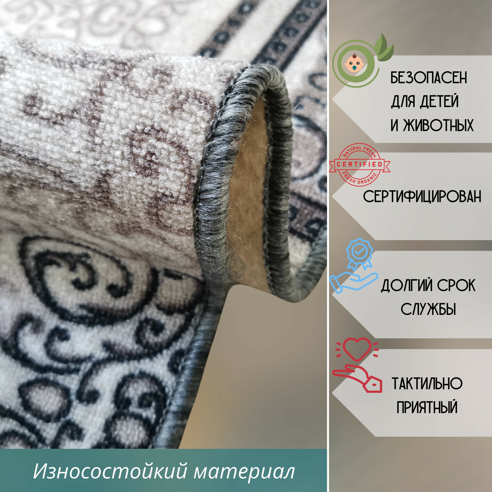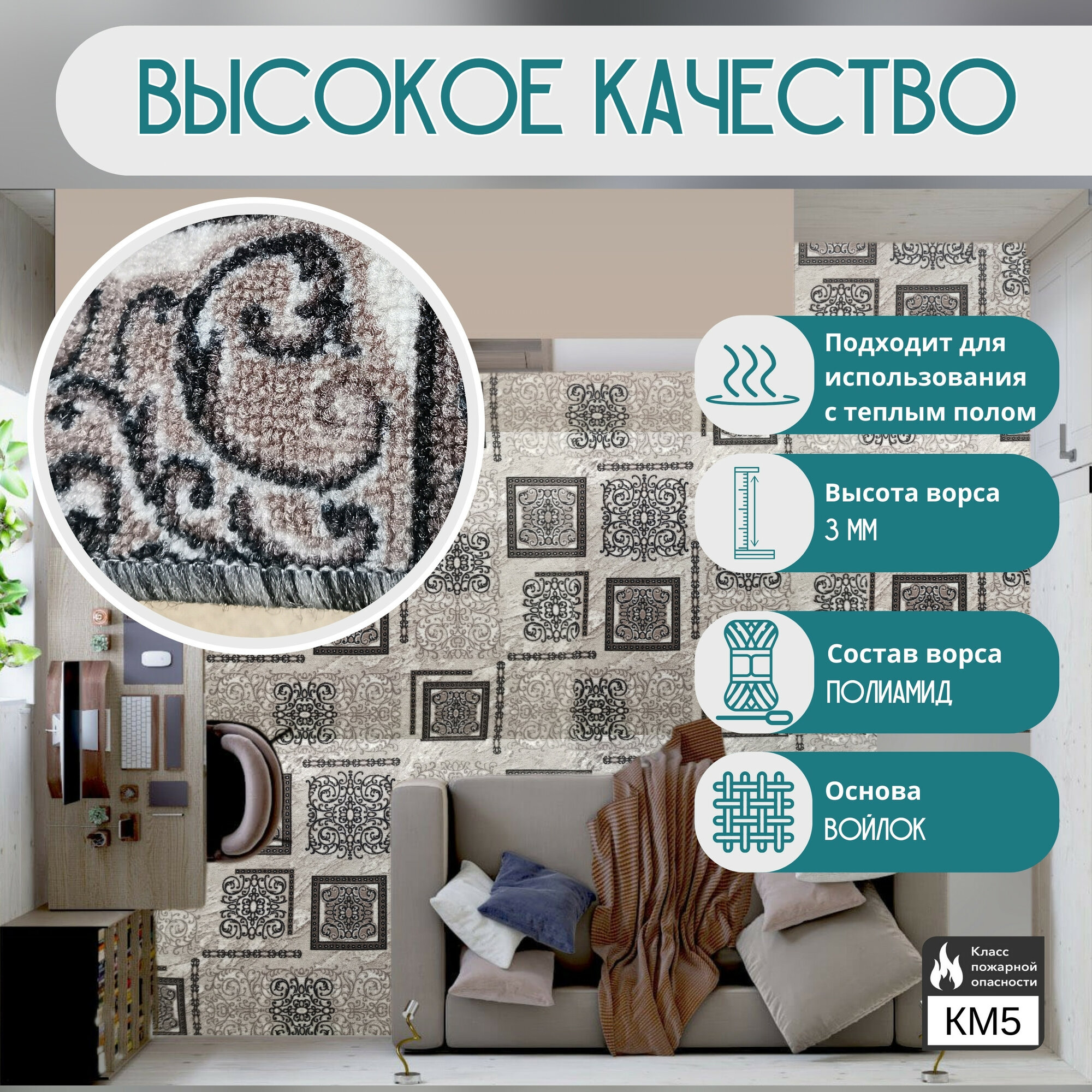 СохранитьКовролин метражом 2х2 м, без ворса "Узор серо-коричневый" с оверлоком интересное: