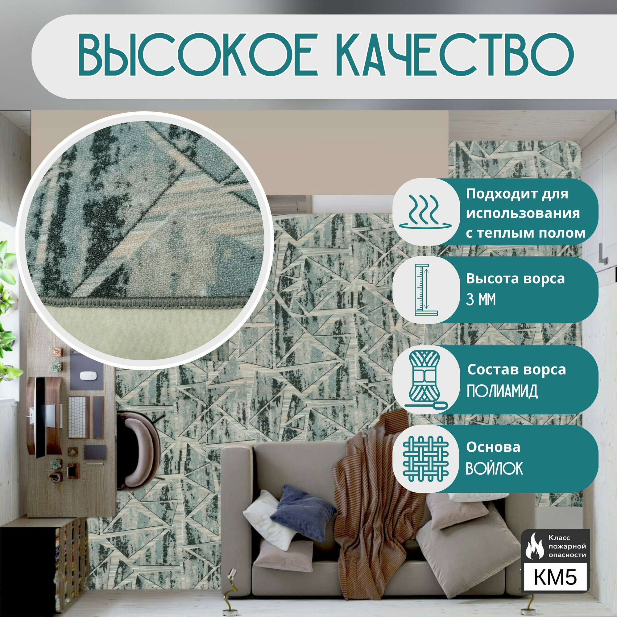 Ковролин на пол метражом 3х15 м. LEVMA PR 21 для офиса и дома.