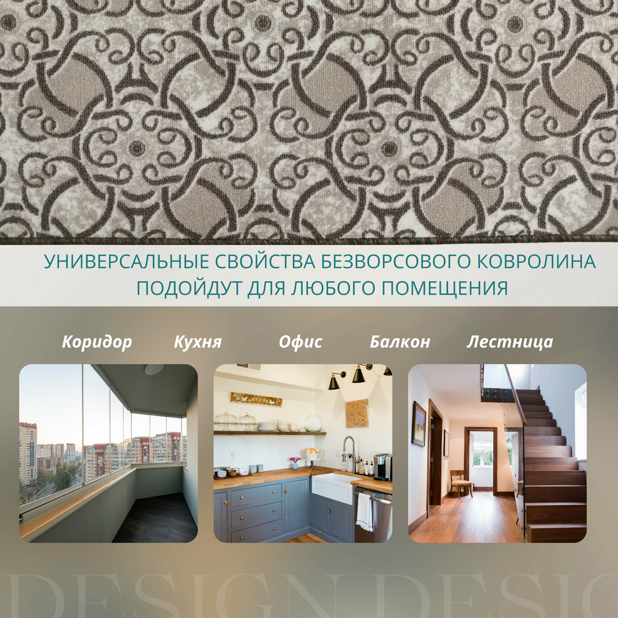 СохранитьКовролин метражом 3,5х3 м, без ворса "Графит цветком", бежевый с оверлоком интересное: