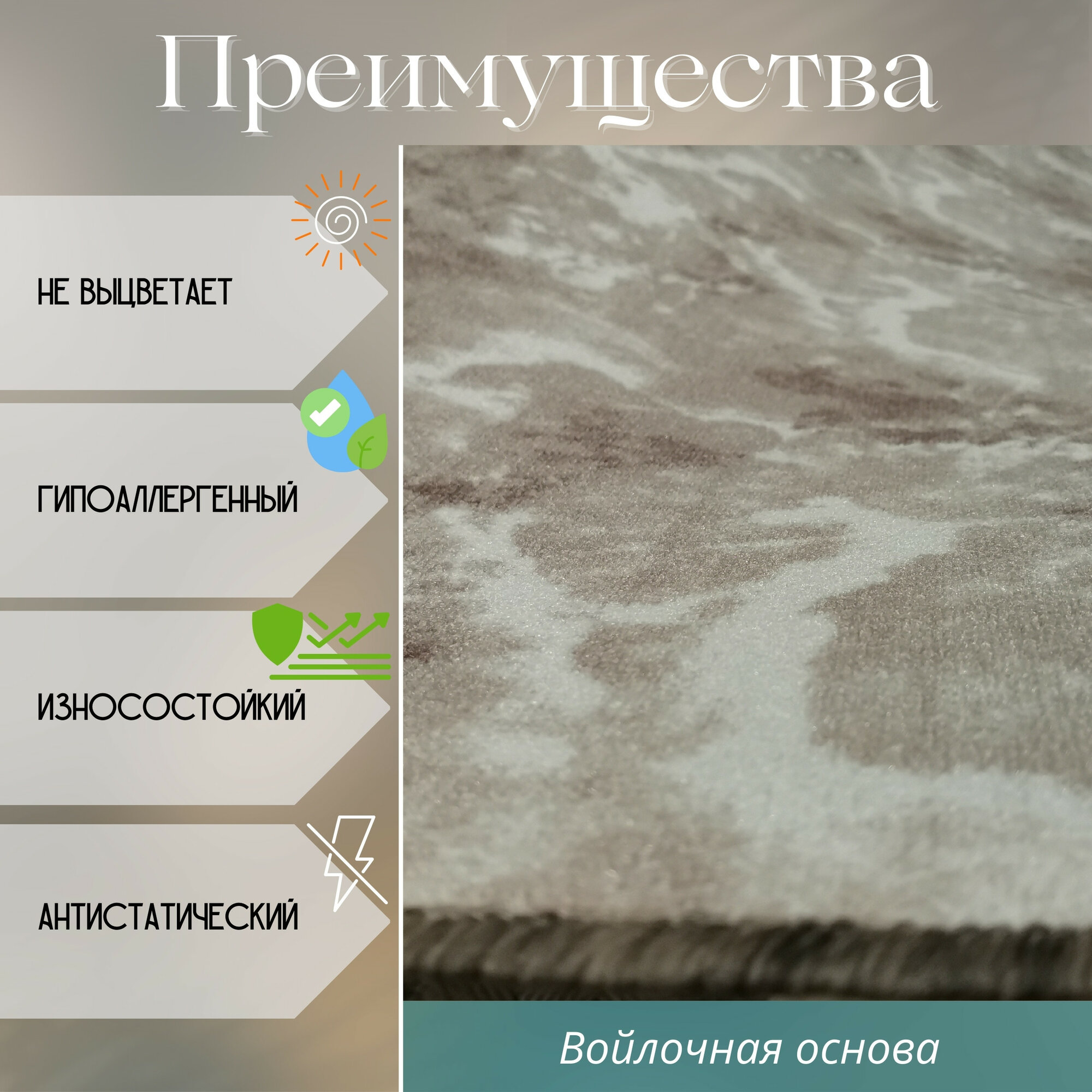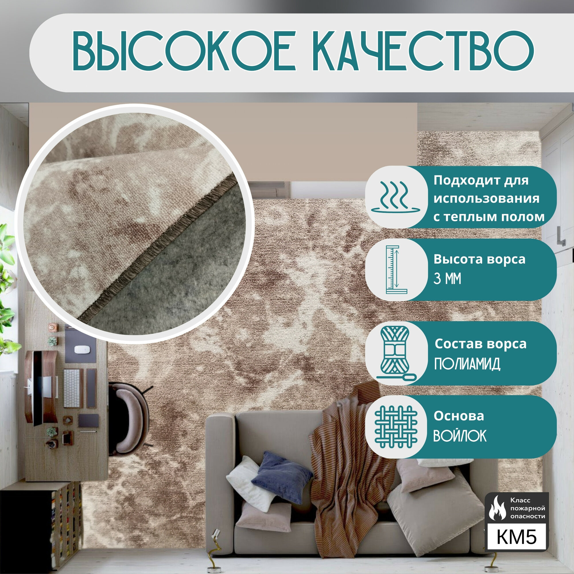 СохранитьКовролин метражом 2х2 м, без ворса "Мрамор", бежевый с оверлоком интересное: