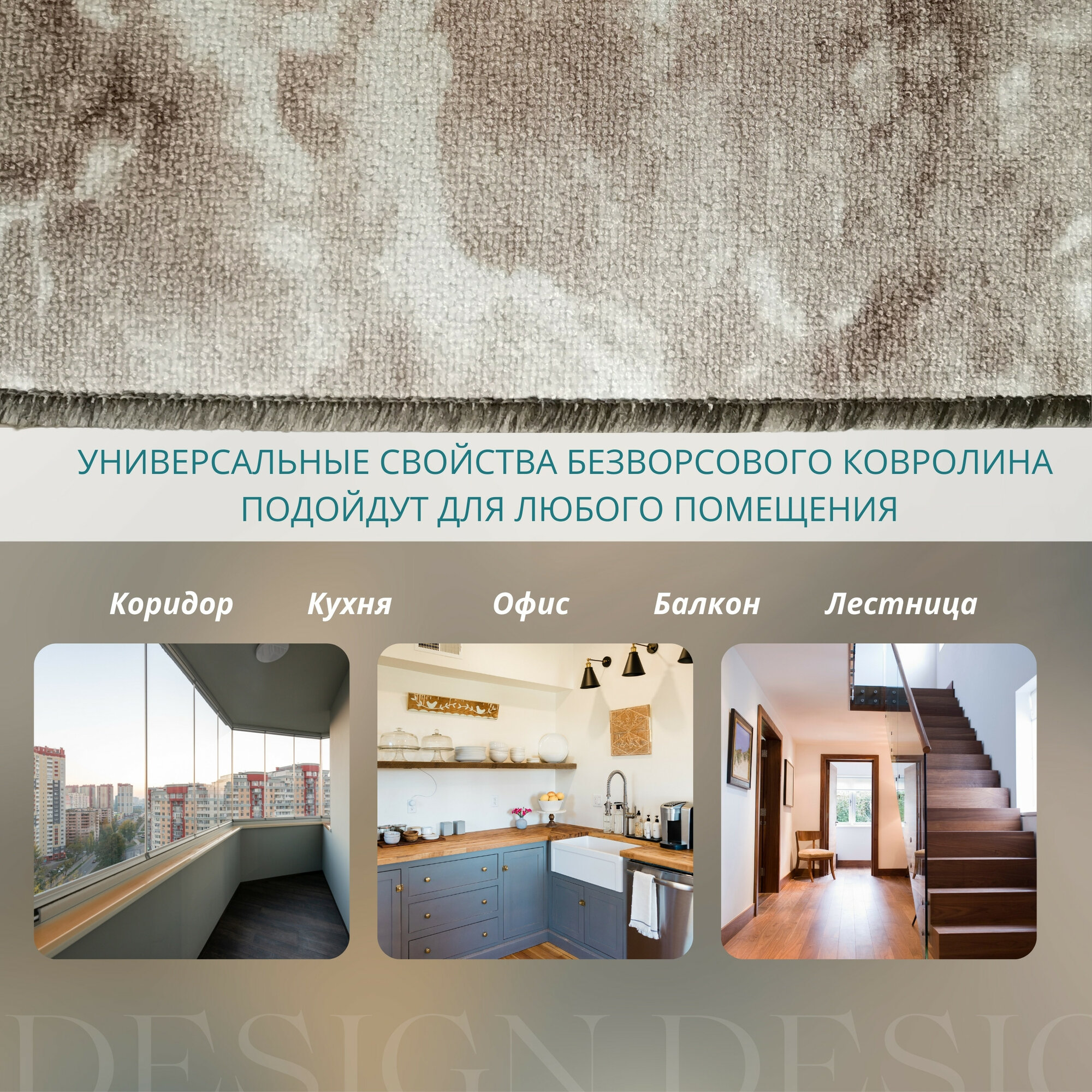 Ковролин метражом 4х2 м, без ворса "Мрамор", бежевый с оверлоком