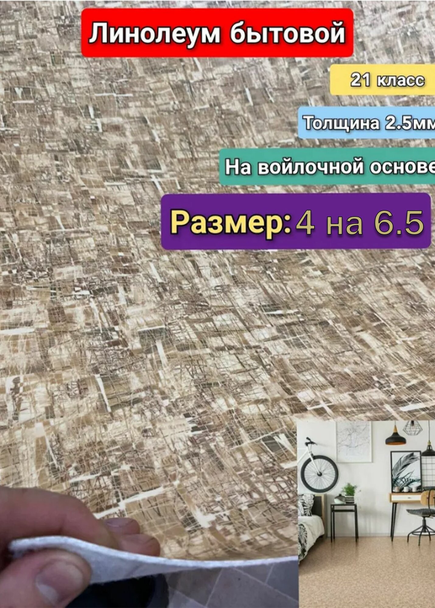 Линолеум бытовой 3 на 6.5 ФРЕСКО-5 (21 класс)Толщина 2.5мм. На войлочной основе.