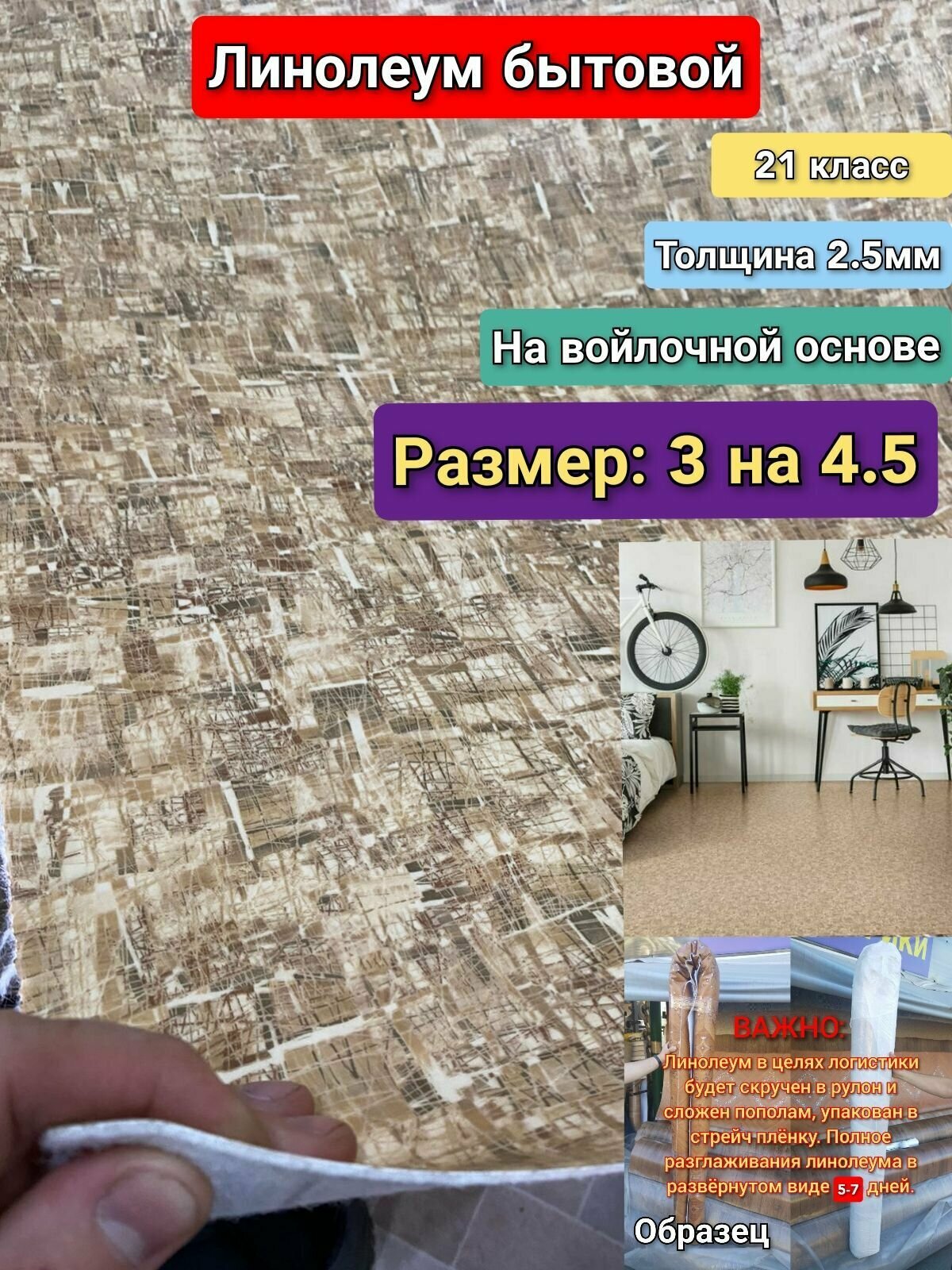 Купить Линолеум бытовой 3 на 4.5 ФРЕСКО-5 (21 класс)Толщина 2.5мм. На войлочной основе.